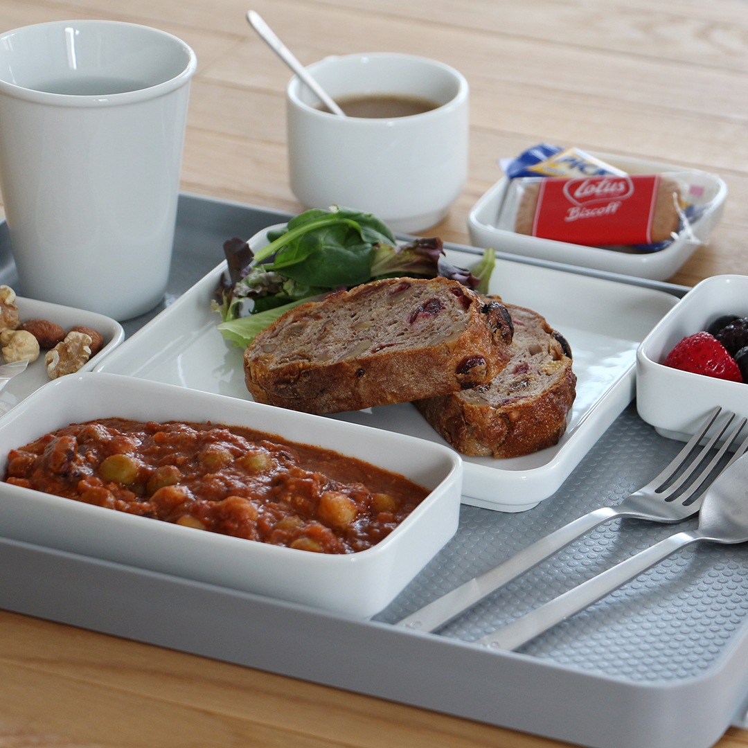 組み合わせ可能かつスタッキング出来る食器は、その自由性と高いデザイン性によりドイツの航空会社を始め様々な航空会社に採用され、機内サービスに用いられました。