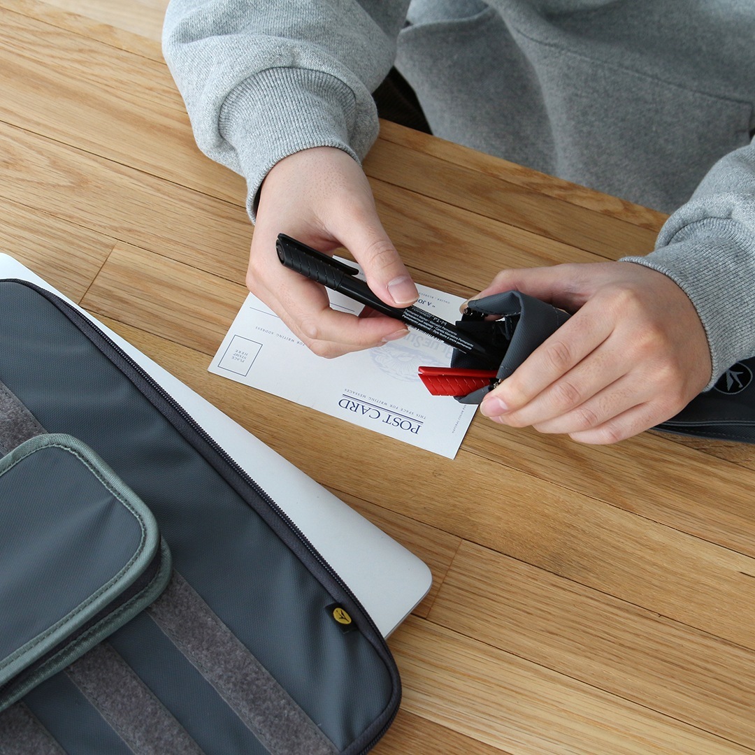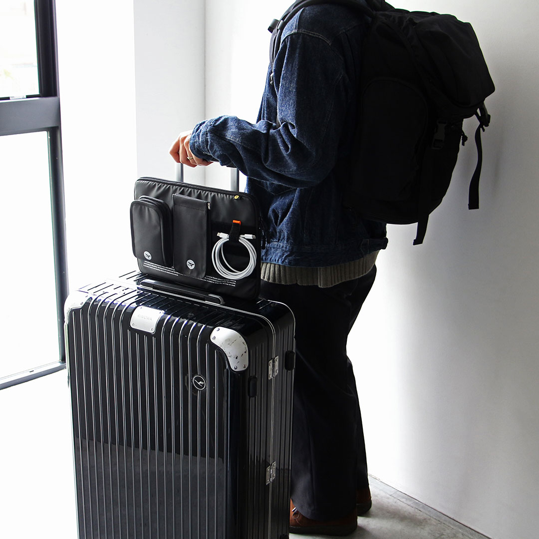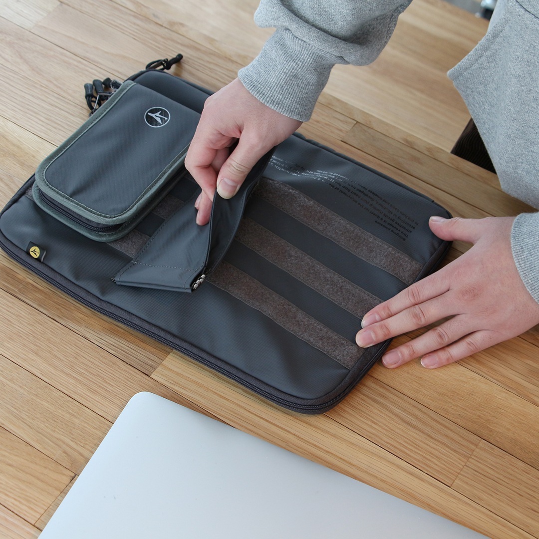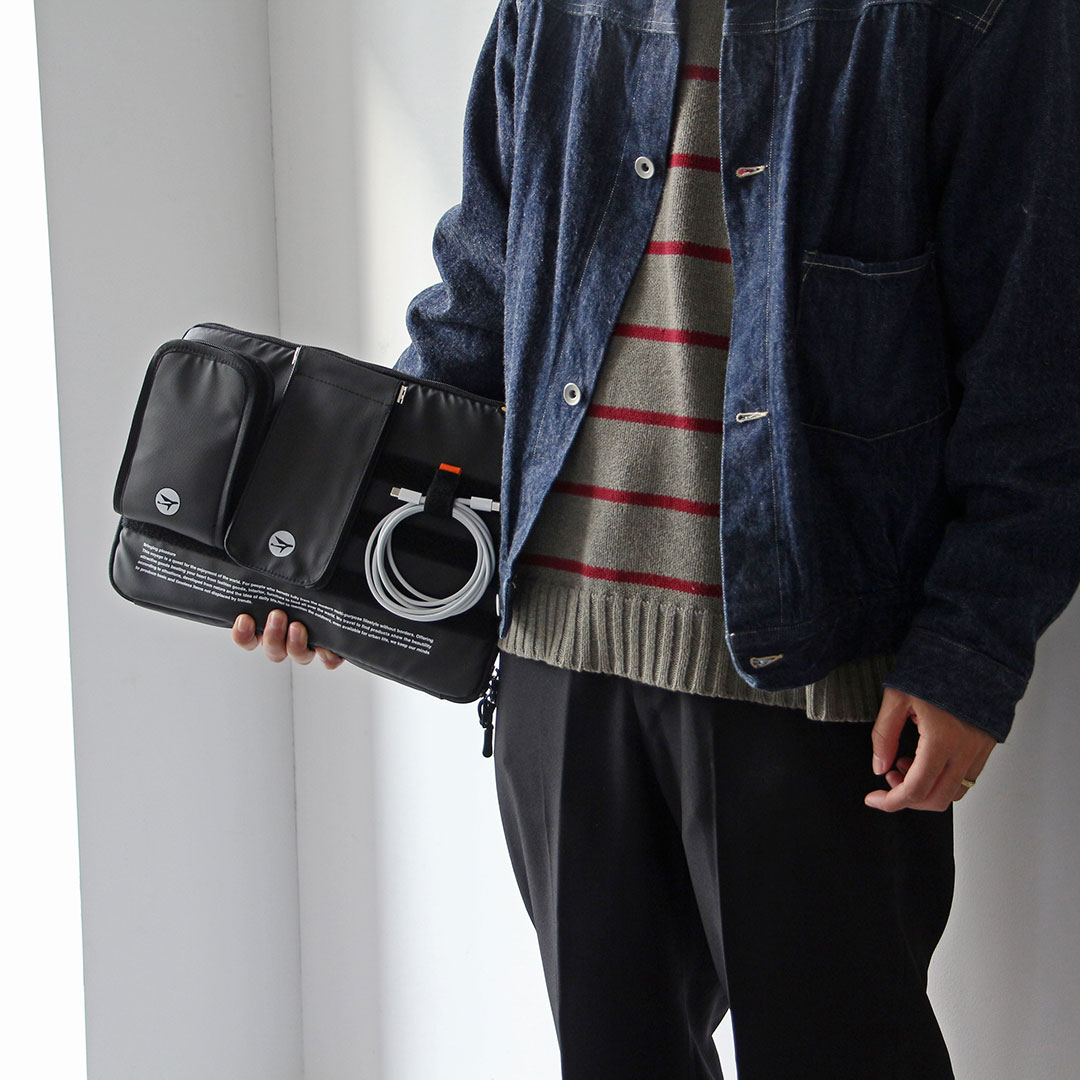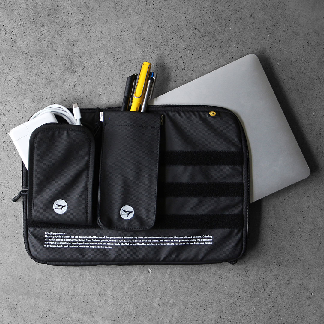 面ファスナーを使用することにより、用途に応じて2種のポーチをラップトップケースにカスタムできるEZPLシリーズ。身の回りのものを簡単に持ち運べる、簡単に取り外しできる、そんな意味を込めた「Easy Place」が名前の由来となっています。