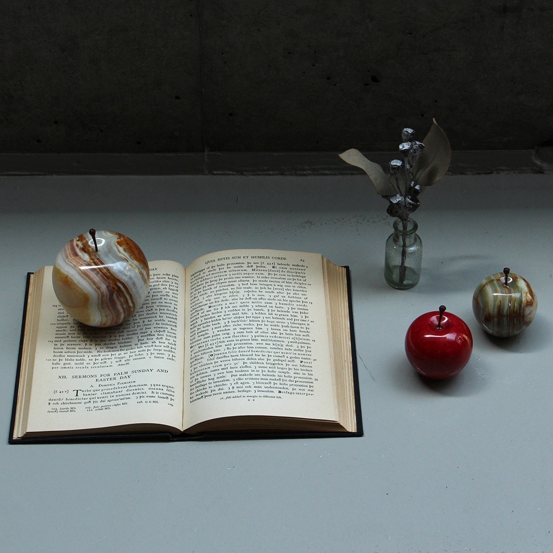 天然のマーブルストーン(大理石)を削り出して作られたアップルオブジェ。