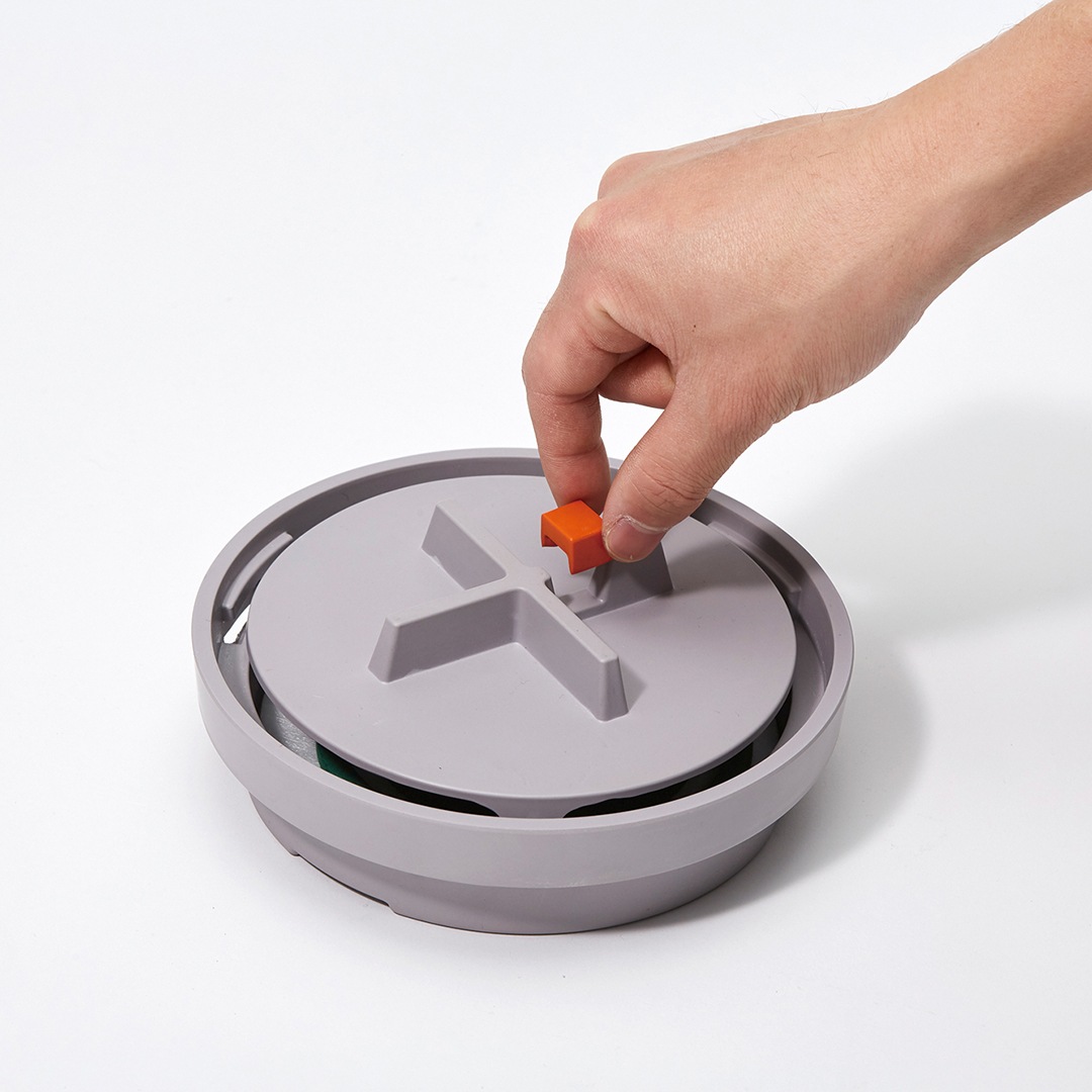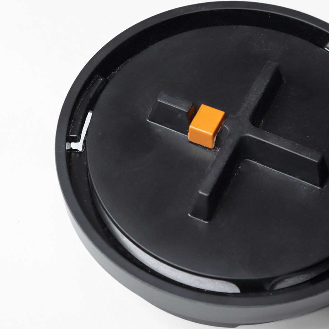 火消しタイマーパーツ(オレンジのパーツ)を蚊取り線香の上に置くだけで、線香に触れることなく安全に火が消える仕組み。簡単に蚊遣り時間をコントロールできます。