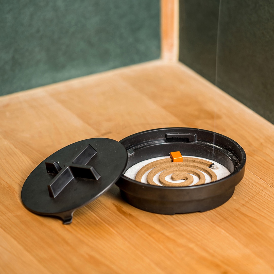 固定式のフタが線香のヤニが部屋に広がるのを防いでくれます。リビングはもちろんアウトドアシーンでも活躍。