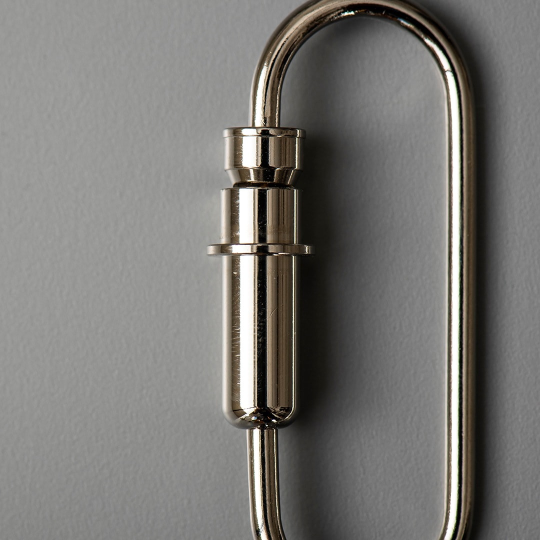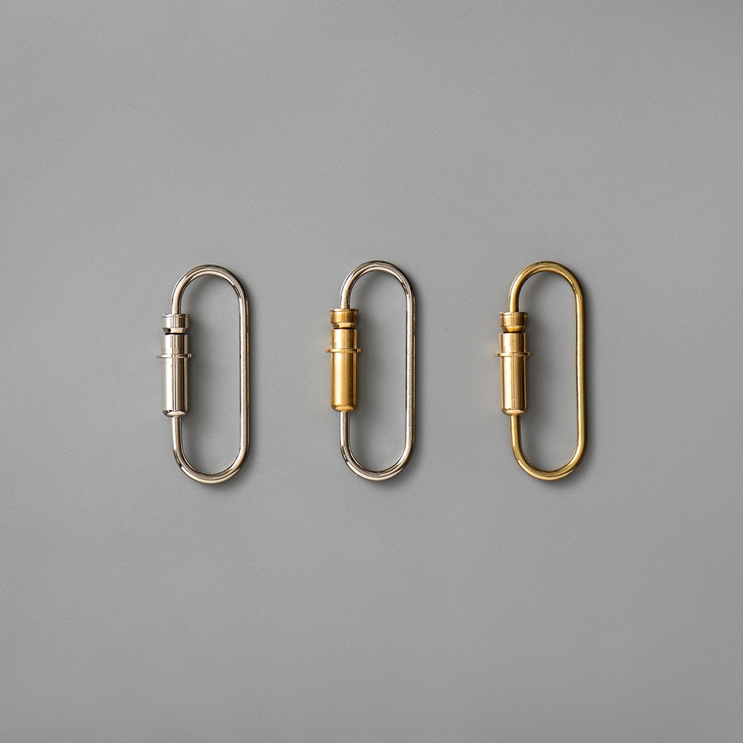 開閉部分はバネ式となっており、下に引っ張りながら鍵を通します。直接鍵を通すことができないため、別売りLYMANやNumbering Dual Plateなどと組み合わせてお使いください。
