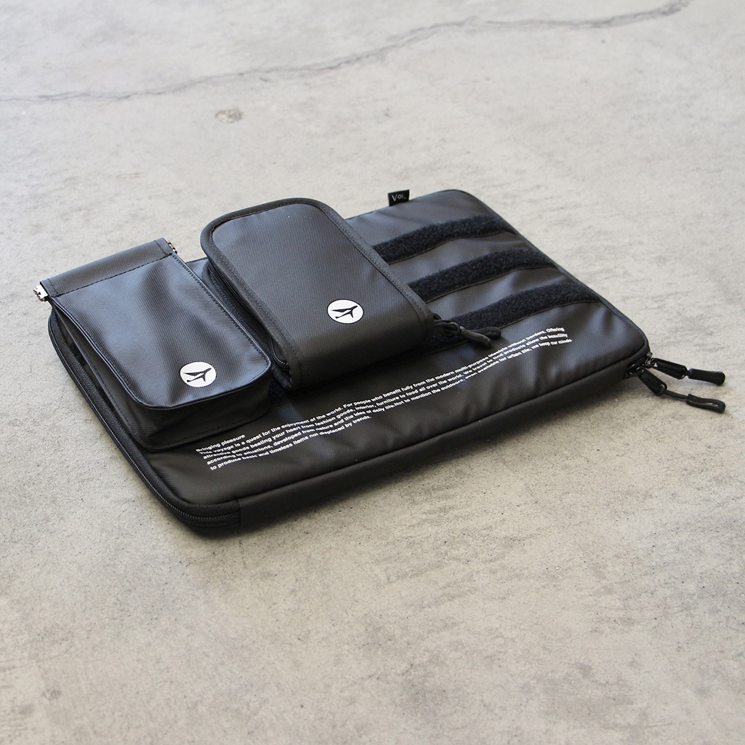 面ファスナーを使用することにより、用途に応じて2種のポーチをラップトップケースにカスタムできるEZPLシリーズ。身の回りのものを簡単に持ち運べる、簡単に取り外しできる、そんな意味を込めた「Easy Place」が名前の由来となっています。