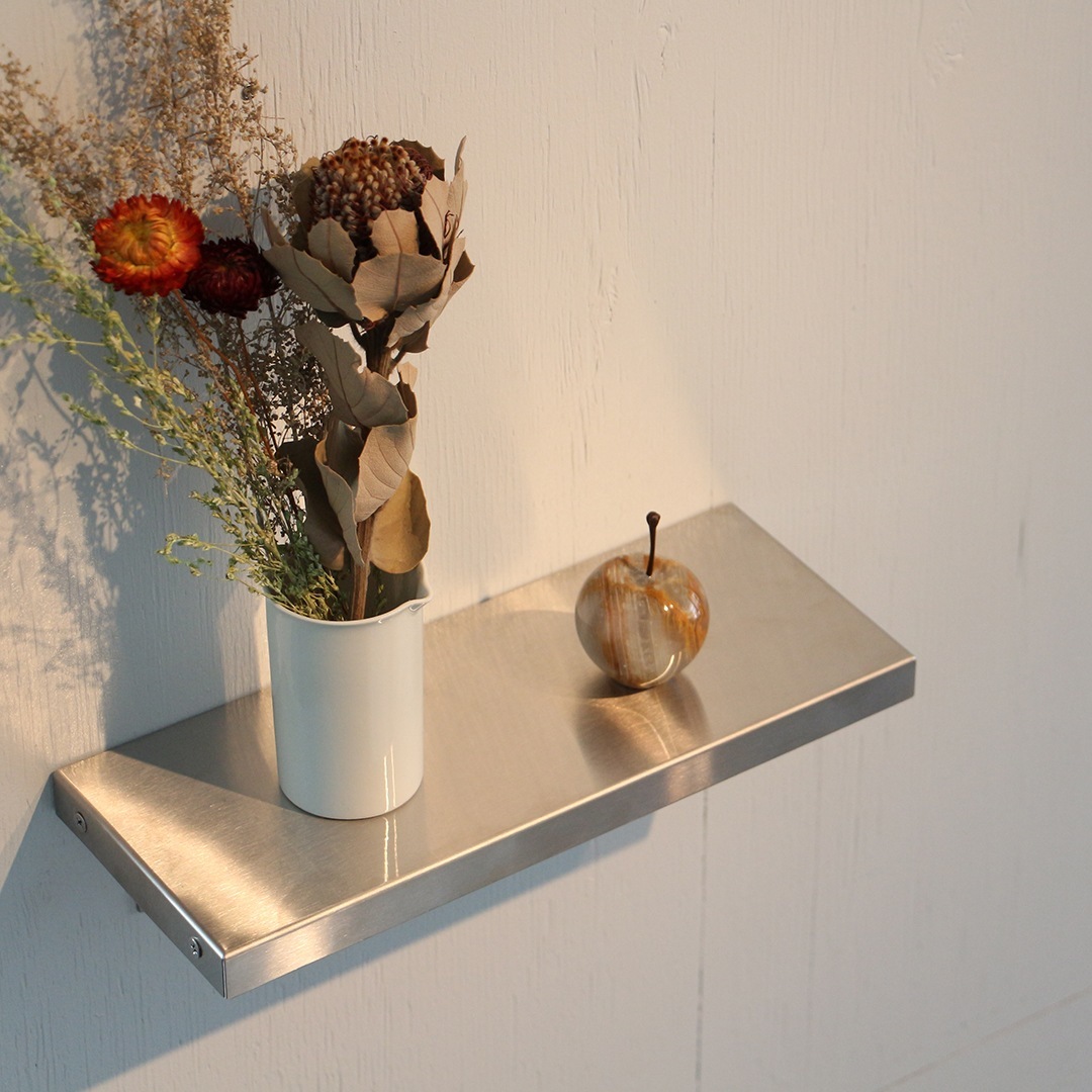 | ・本製品はお客様にて組み立てが必要です。 ・本製品には木材、棚受けは付属しておりませんのでご用意ください。 ・表記サイズはステンレスの厚みを含めた外寸の為、使用する木材は2~3mm短くカットしてください。 |