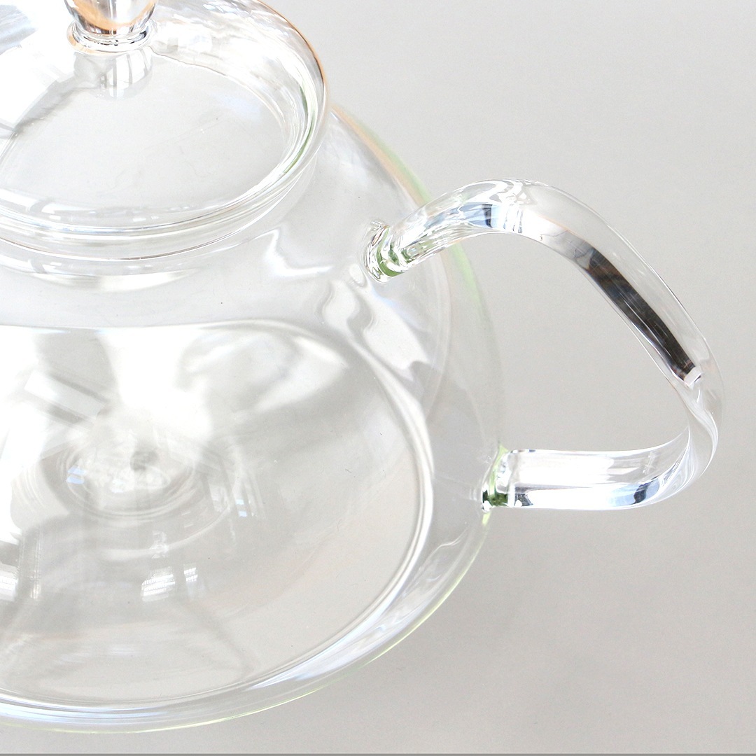 初めて火にかける際は割れないものかとヒヤッとするかもしれませんが直火でOK。ガラス・水を通して見える炎の光や少しずつ沸騰していく様子はどこか新鮮で美しく、お湯が沸くまでの時間も楽しむことができます。(IHではご使用いただけません)