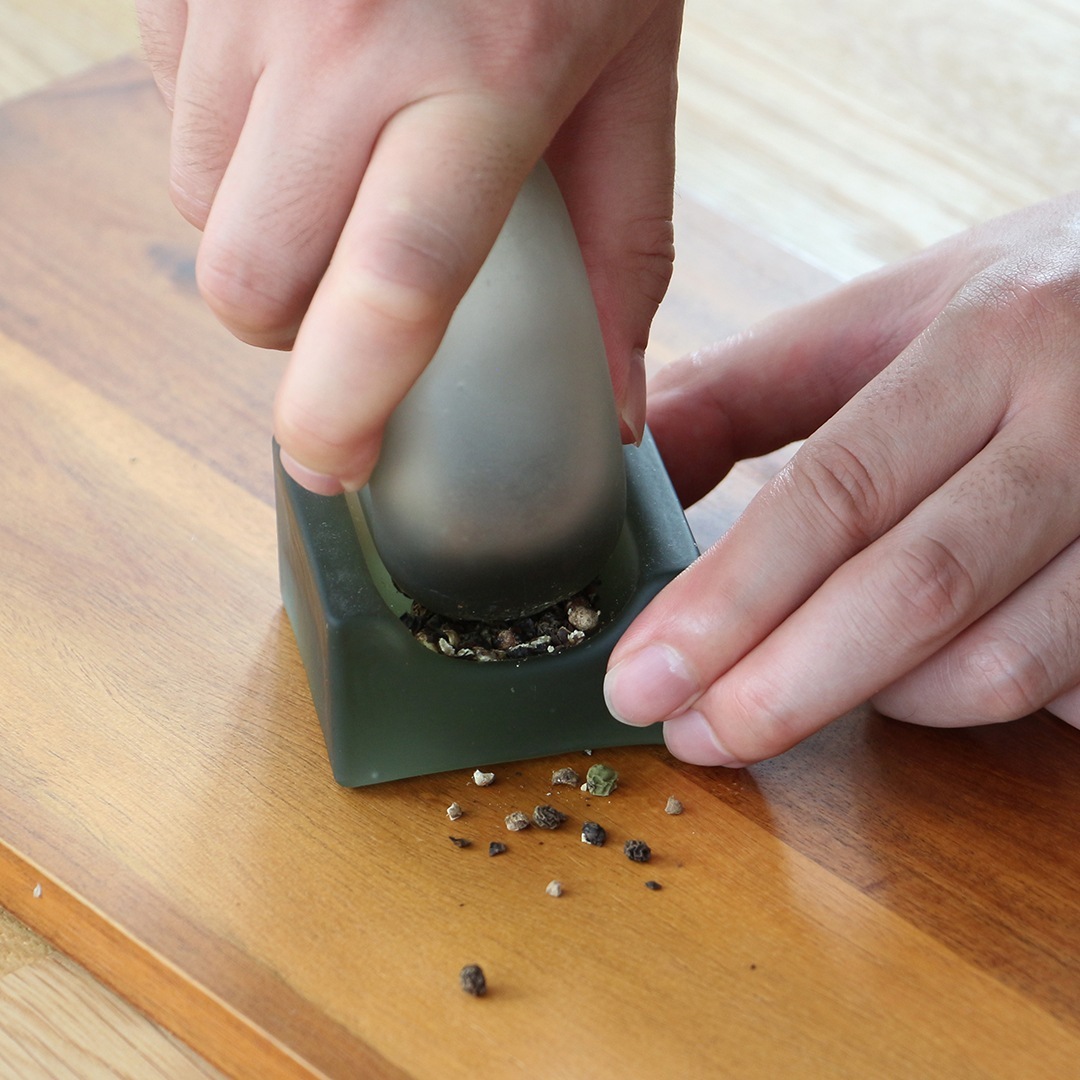 一般的なミルは回転やテコの原理を用いて内部の刃で挽く構造が多いところ、本製品は香りの良さをさらに引き立て、粒子の細かさを微調整できるように、よりシンプルなすりこぎの形状を採用。
