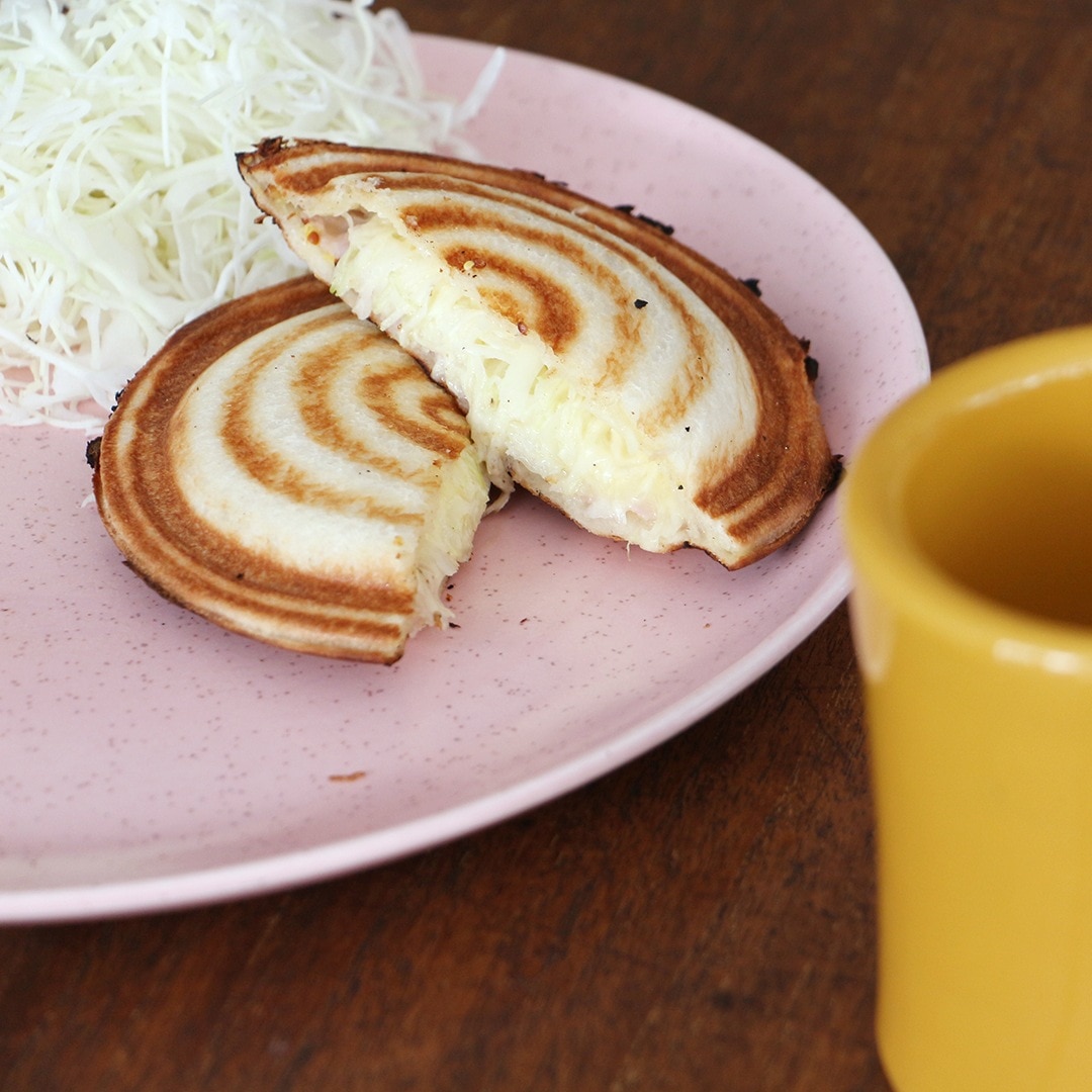 美味しく焼くコツは、両面たっぷりオイルやバターを塗ってから焼くこと(※)。隙間なく閉じる構造なのでチーズ、チョコレートなど溶ける食材を使ってのホットサンドも楽しめます。