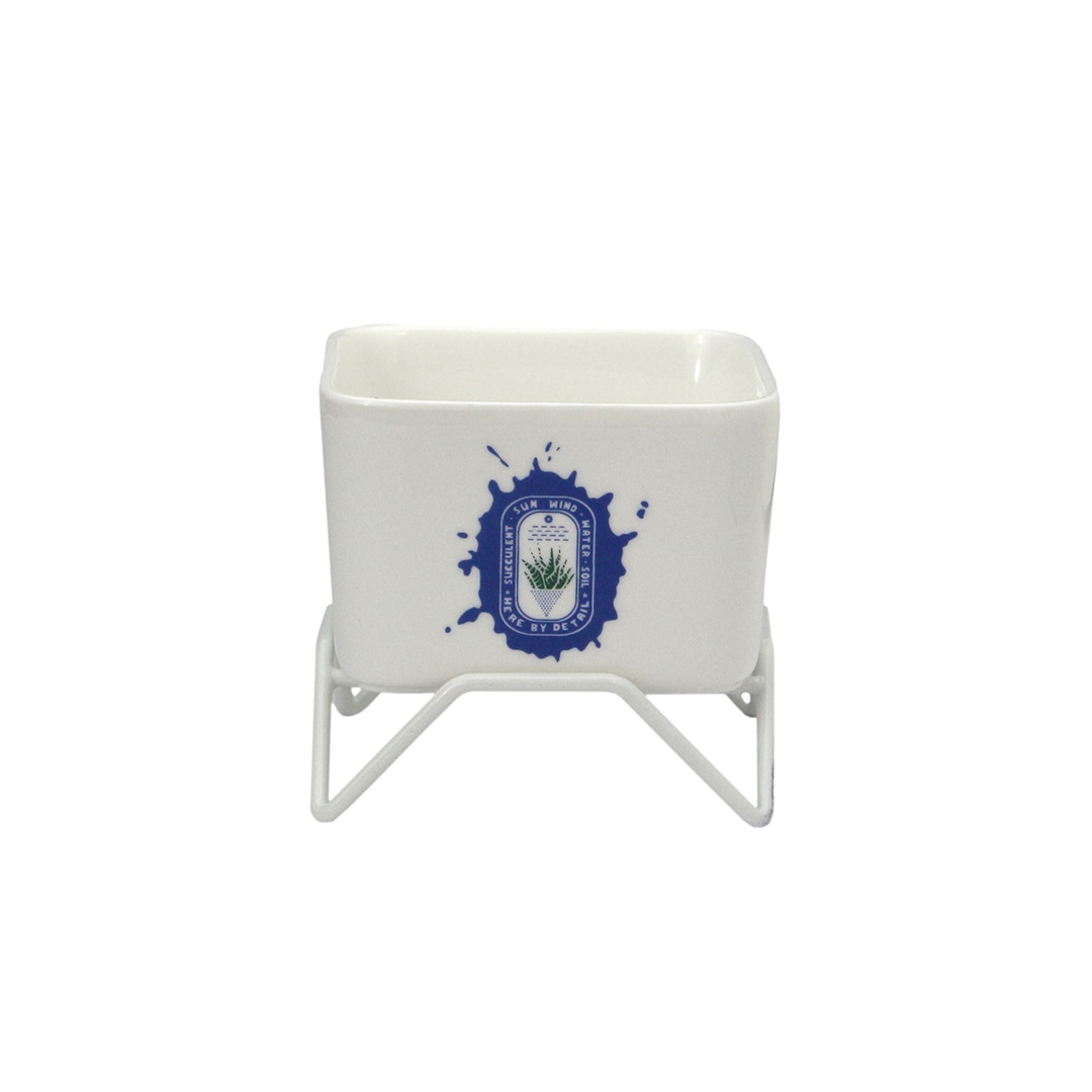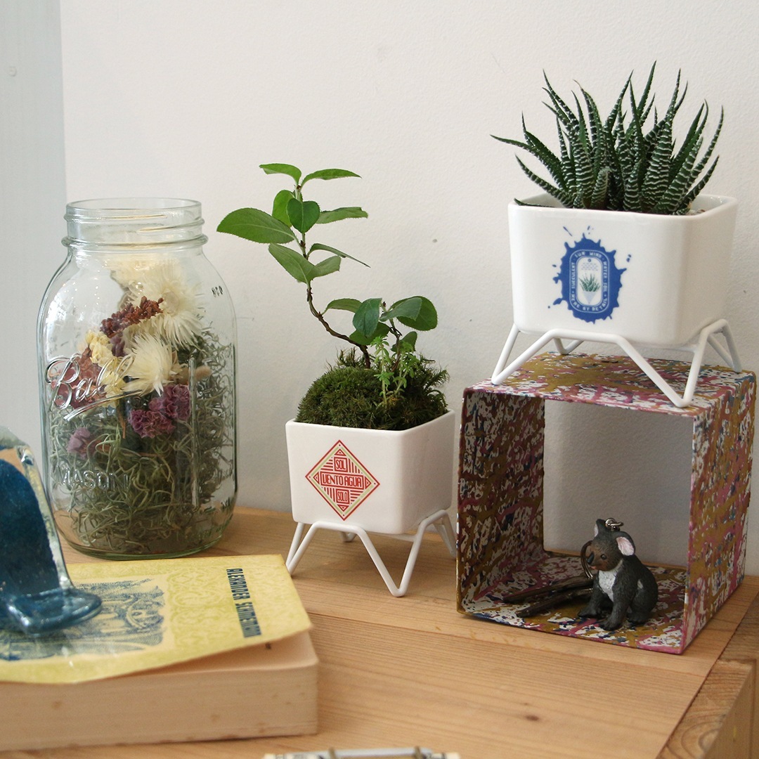 ミニサボテンや多肉植物、苔類など様々な植物に合うコンパクトサイズの磁器プランター。付属のホワイトワイヤースタンドに乗せて飾ることができます。