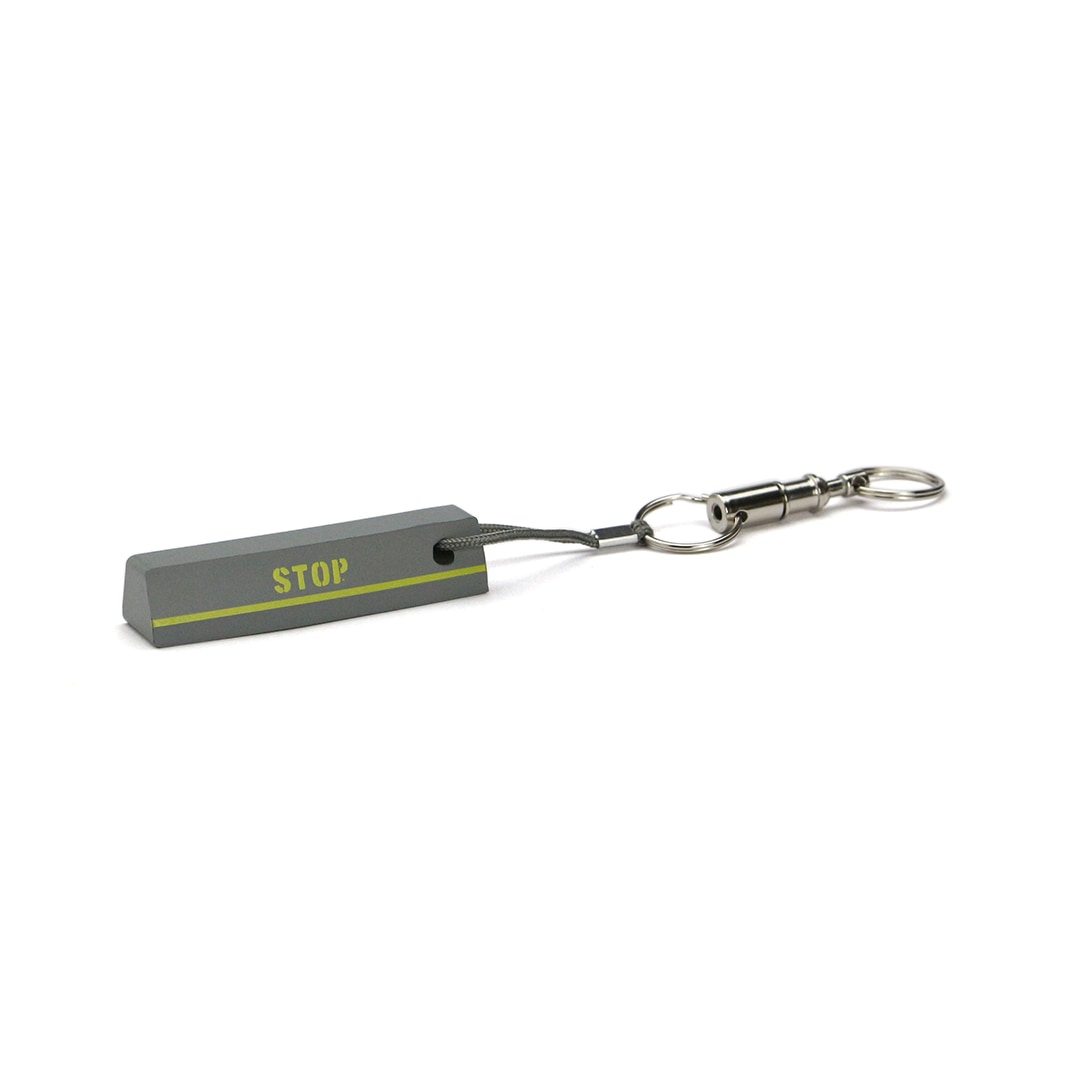 パーキング縁石をイメージしたフローティングキーリング。各カラー異なるデザインとなっています。