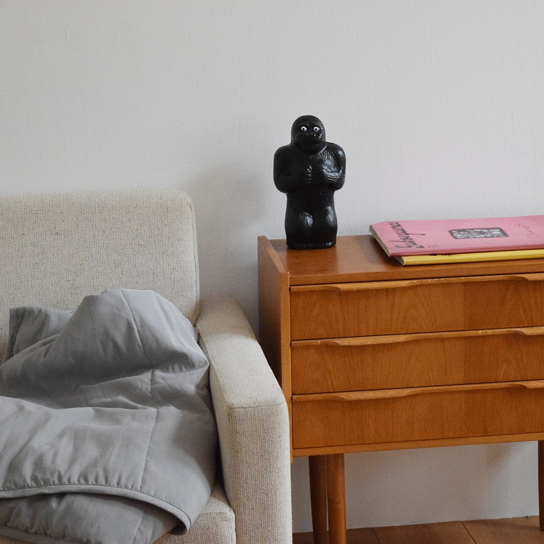 メキシコからやってきたゴリラの貯金箱。1933年に制作された映画『キングコング』では薄気味悪い笑みを浮かべて胸を叩くシーン、その薄気味悪さと愛嬌の間のような絶妙な表情は強く印象に残ります。そんな当時のキングコングに影響を受けたであろうこのゴリラバンク。