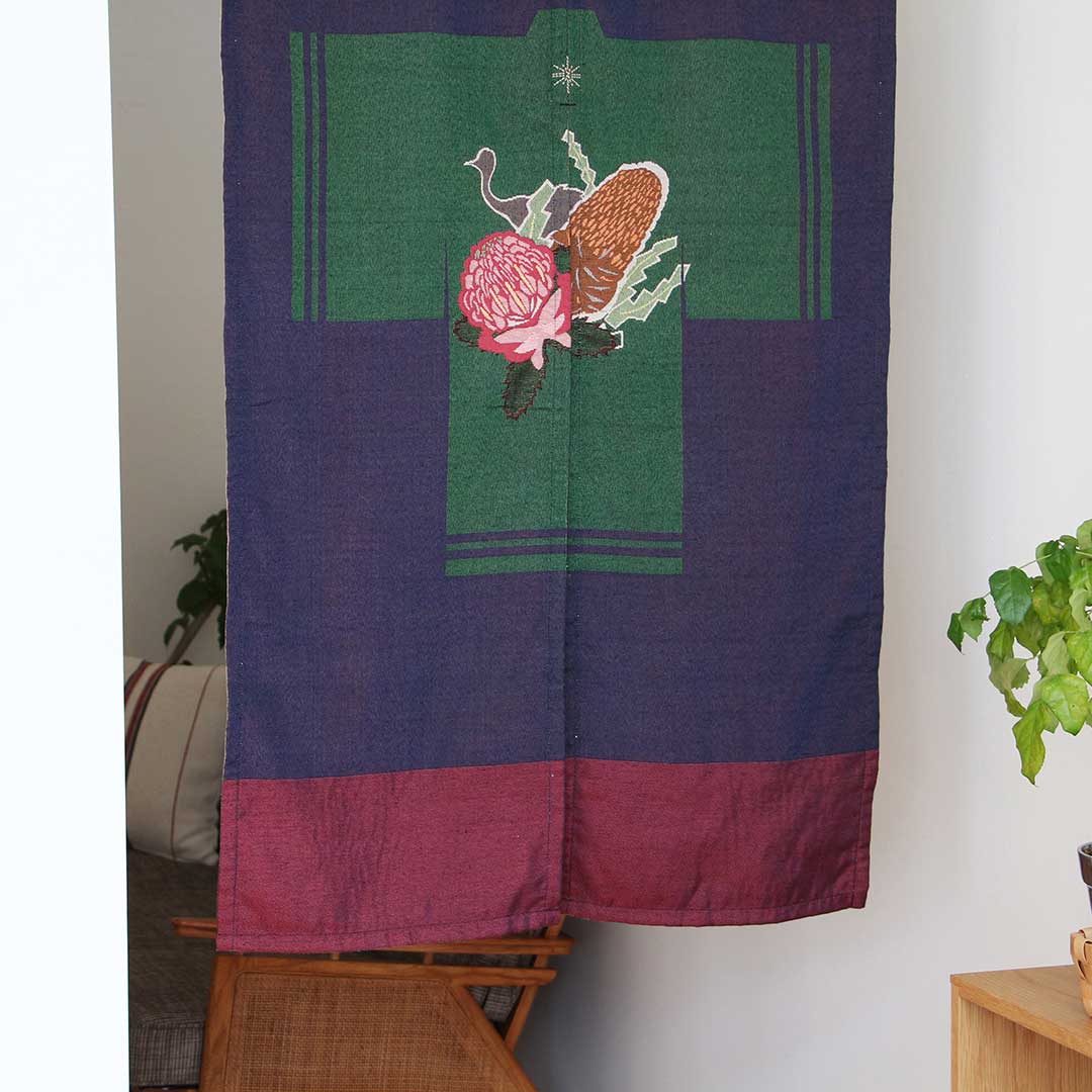 従来の使い方と同じように玄関先に掲げたり、部屋や空間の間仕切りとして、着物の背面に描かれた各デザインを空間に合わせて選んでみてはいかがでしょうか。