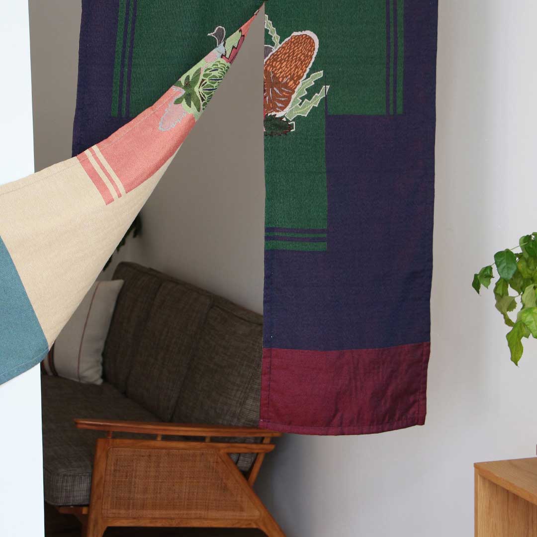 『植物を飾るのは良い習慣だ』をテーマに、空間を彩るアイテムを展開しているkarin。植物をデザインに落とし込んだのれんを作成しました。