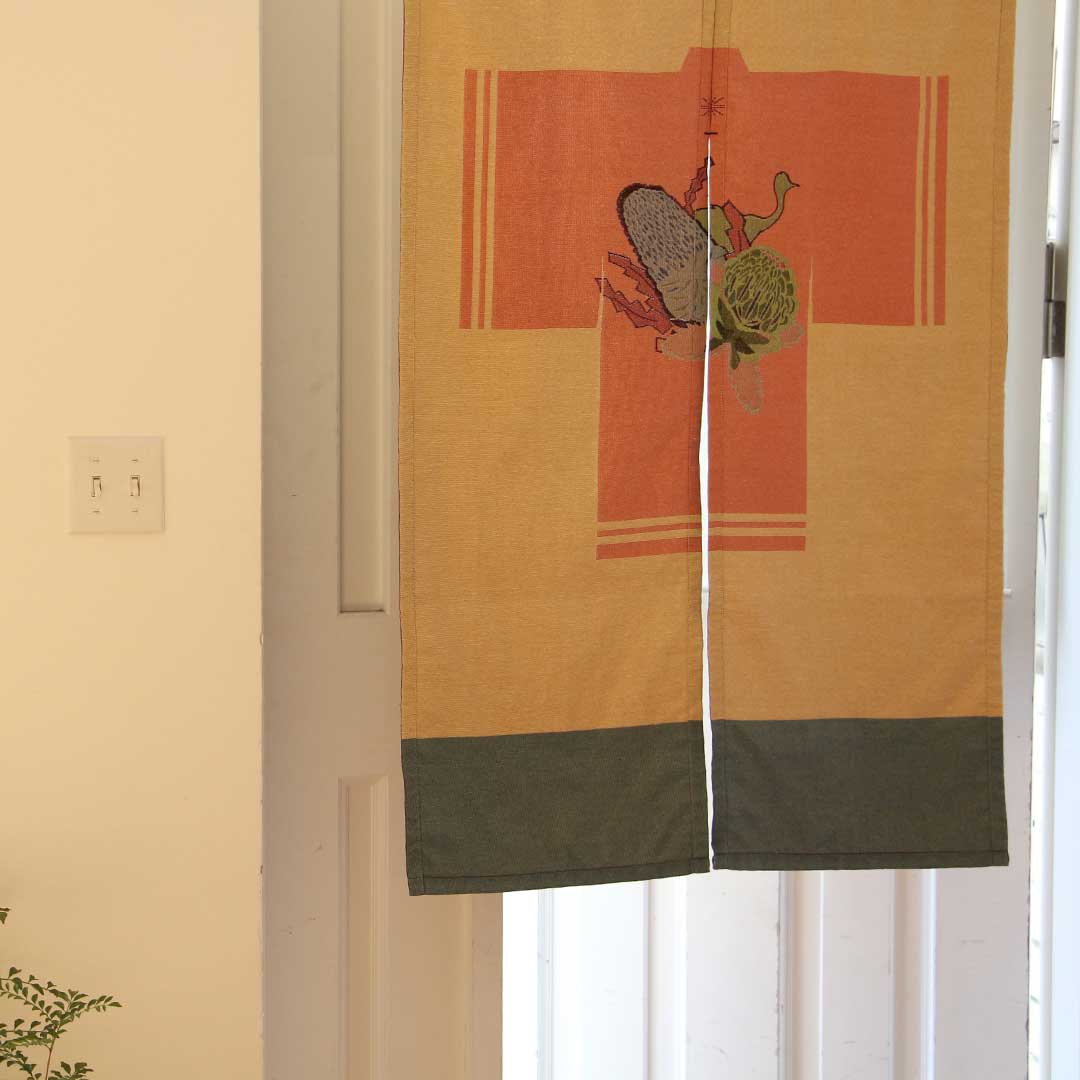 暖簾(のれん)は古くから屋内に風や光が入るのを防いだり、目隠しとしたり内外を柔らかく仕切るために用いられてきました。次第に、商店の開店のサインや銭湯での男湯、女湯を示すサインとしても使われるようになり今日まで様々な場所で親しまれています。