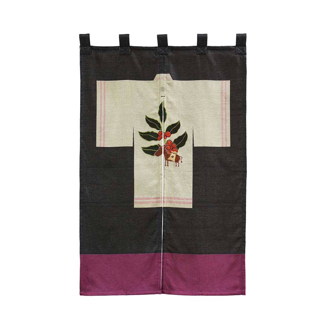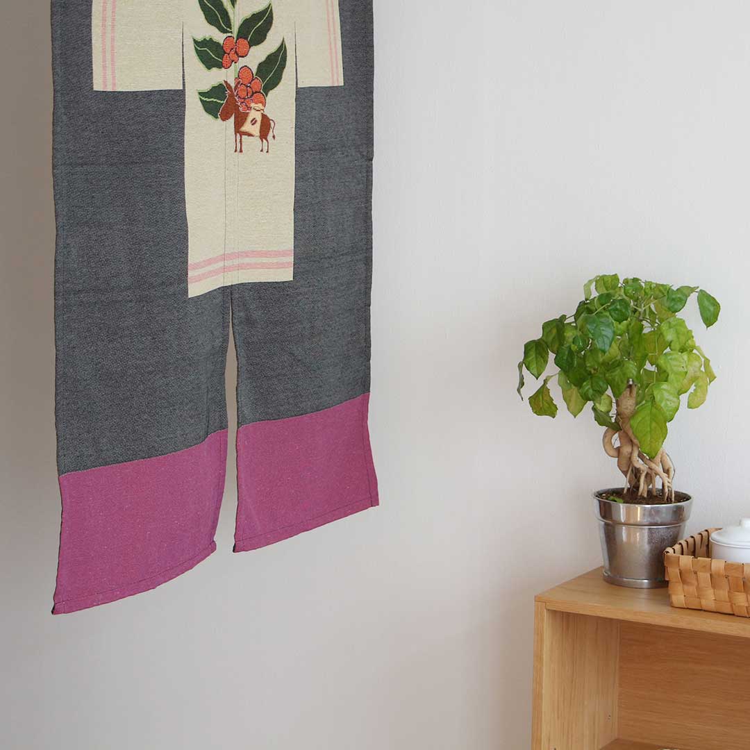 『植物を飾るのは良い習慣だ』をテーマに、空間を彩るアイテムを展開しているkarin。植物をデザインに落とし込んだのれんを作成しました。