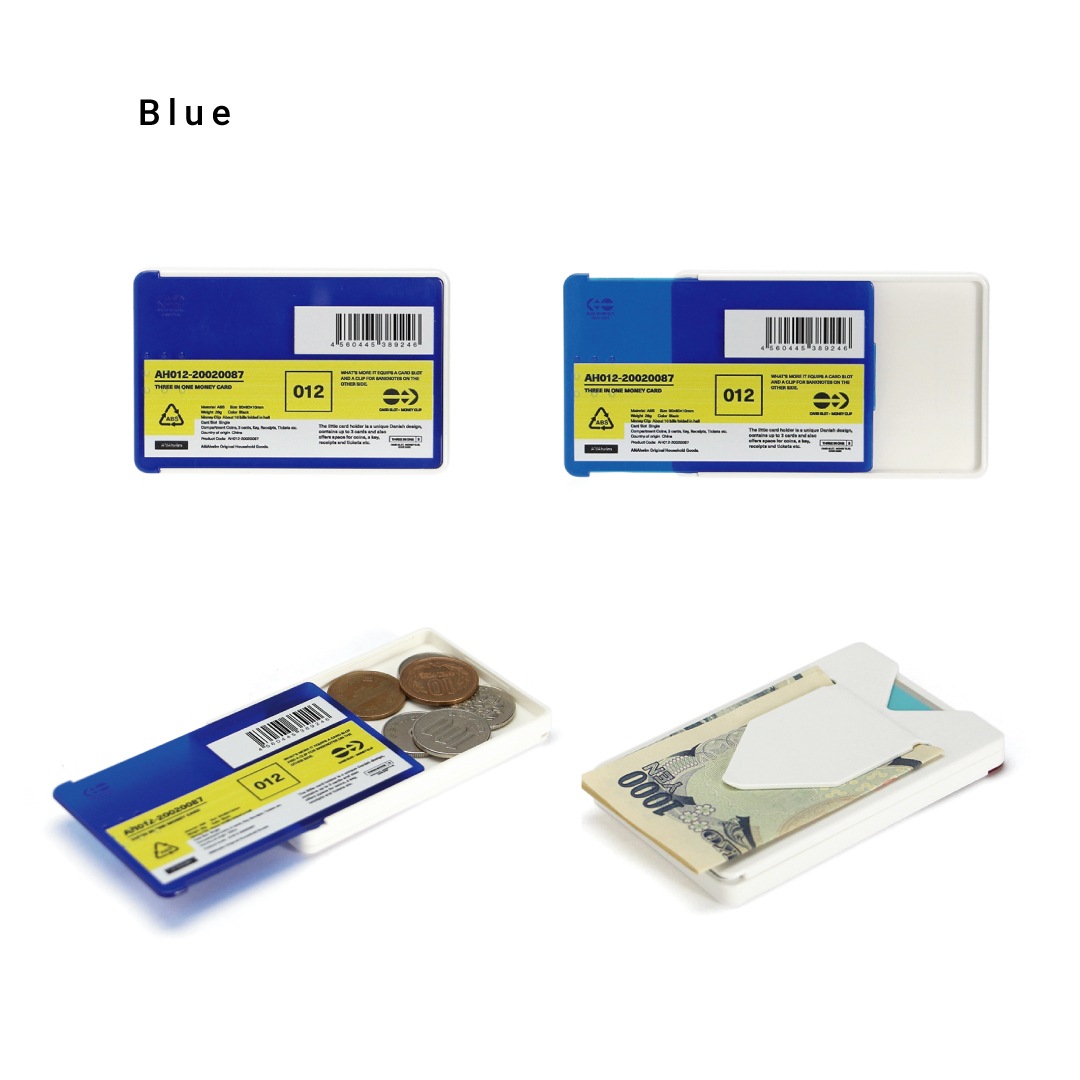 コインケース、カードポケット、マネークリップの3つの機能が備わったミニマルなマネーカード。