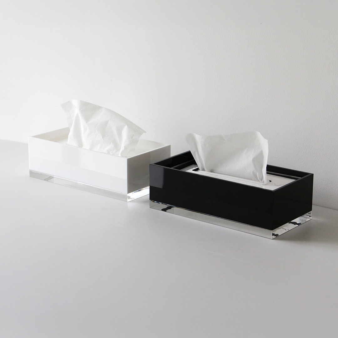 国内の熟練の職人がひとつひとつ丁寧に仕上げた、上質なティッシュボックス。厚みのあるクリアアクリルを採用し、存在感とともに高級感を演出してくれます。シンプルながらも洗練されたデザインで、どんなインテリアにも美しく調和します。
