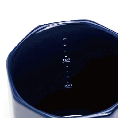 本体の内側に計量用の目盛りがプリントされている磁器製マグカップ。目盛りだけでなくたっぷり入る300mlの容量、電子レンジ・食洗機OKと使い勝手の点と、こだわったフォルムのデザインを兼ね備えた、これまでに無いマグが完成しました。