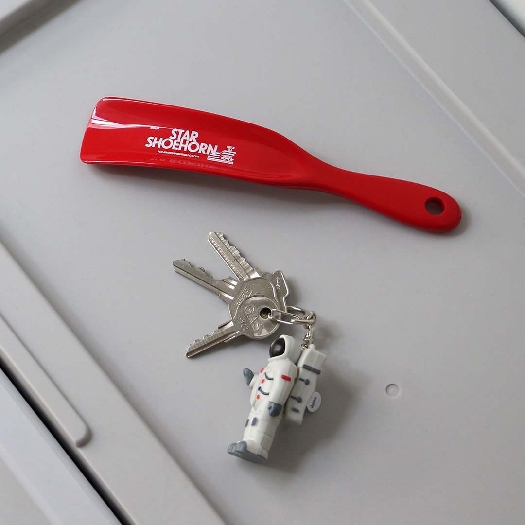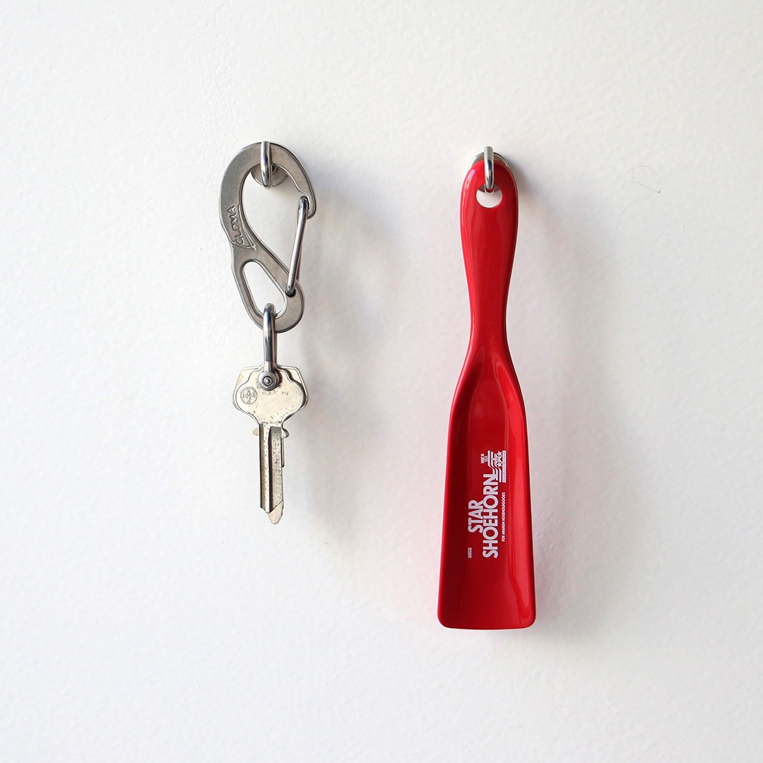 全長18cmと、柄を手に取り靴の着脱もしやすいコンパクトなサイズ。ハンドル部分にはホール(穴)付き。玄関の棚の上や靴箱の中に収納するのはもちろん、扉につけたフックに掛けられるのも意外と便利なポイント。軽量かつ高品質なので出張や旅先先にも持っていきたいプロダクトです。