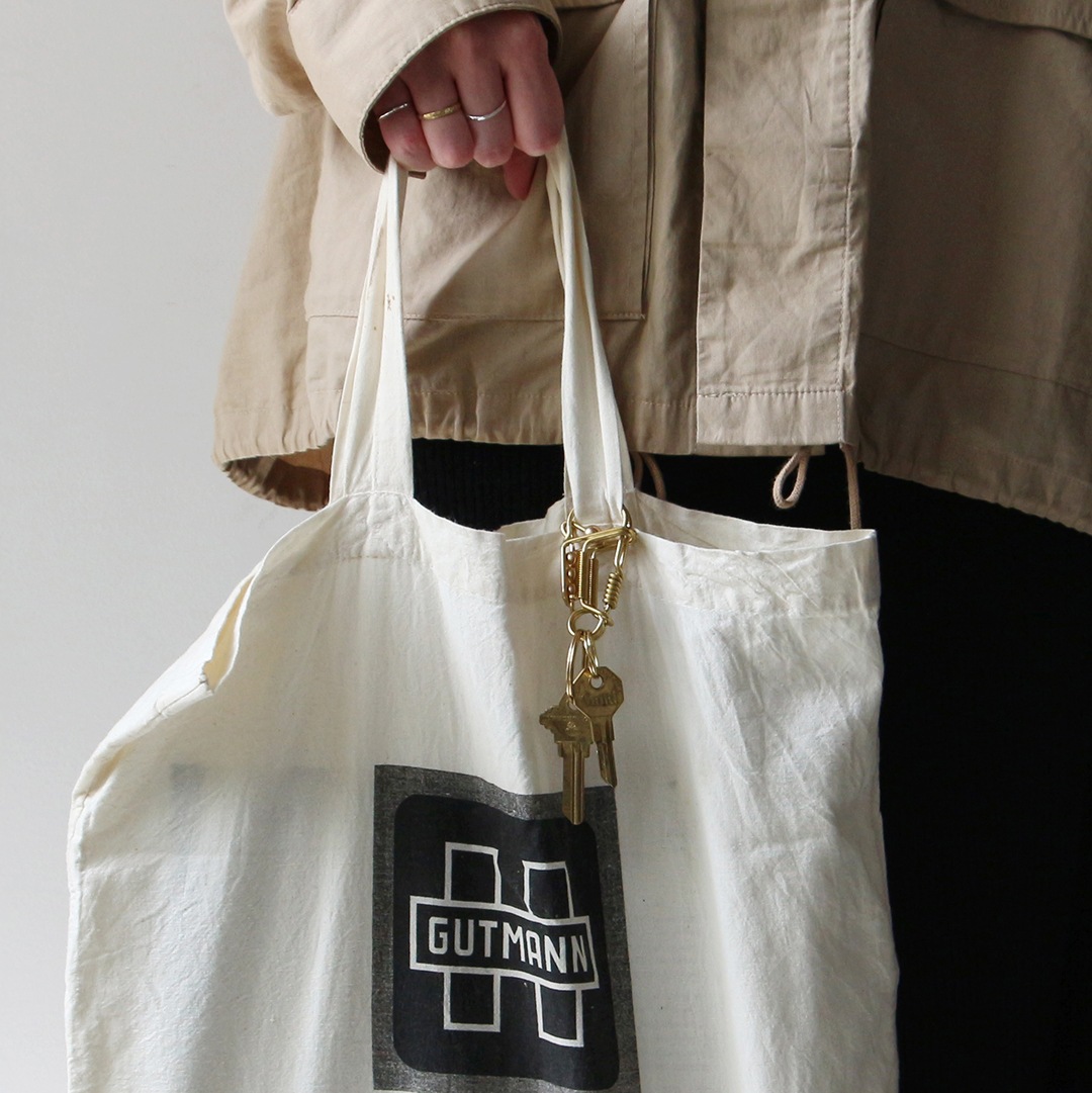 一見複雑そうに見えるカラビナの開閉は実はシンプルな構造で、素材の経年変化も楽しめます。キーリングとしてファッションに取り入れることで、日常にほんの少し特別感をプラスしてくれるプロダクトです。