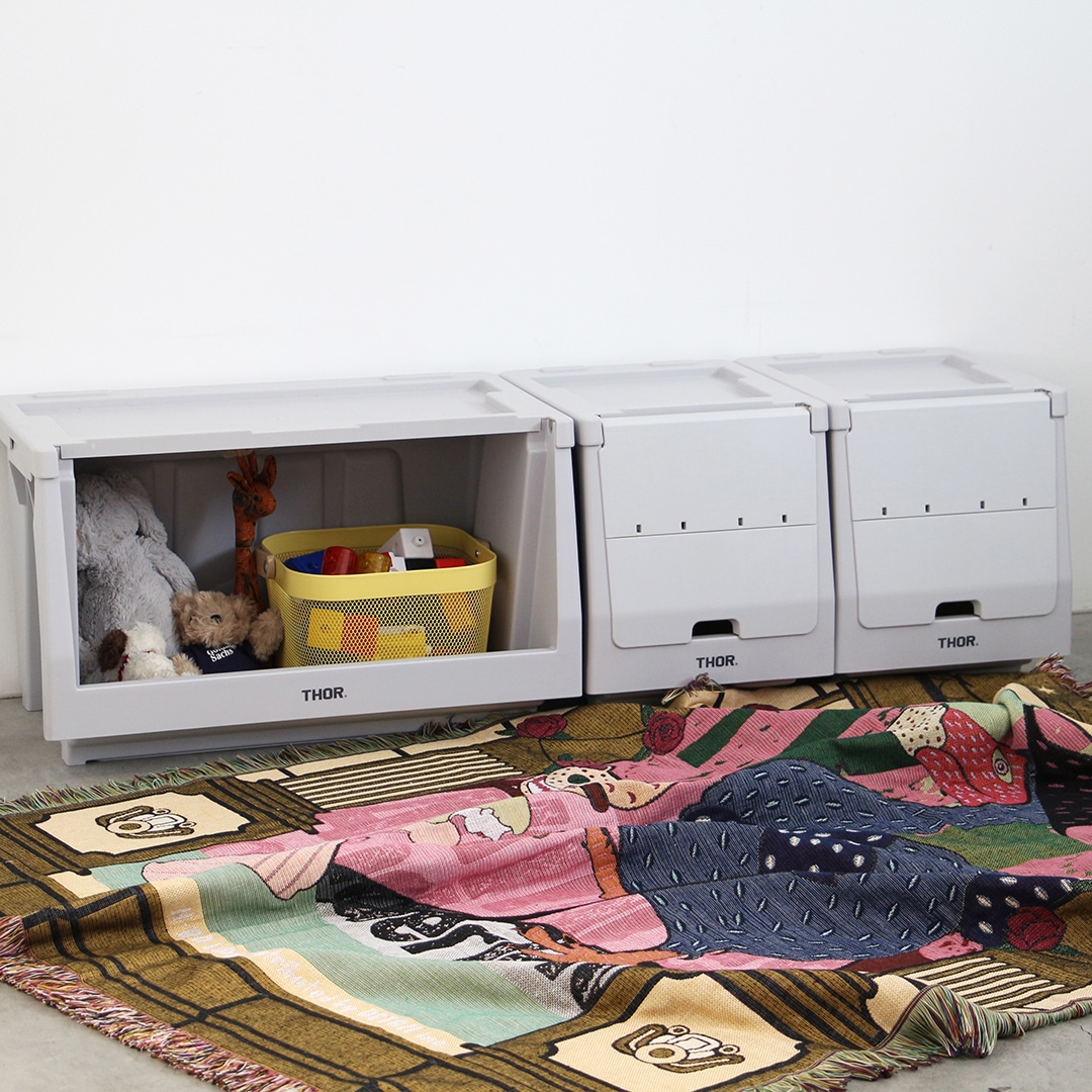 本体、 蓋、 扉を組み合わせて自分好みの棚を作ることができるTHORスタッキングシェルフコンテナ。インテリアはもちろんキッチン周りやアウトドア・ガーデニングなど様々な場所で活躍します。