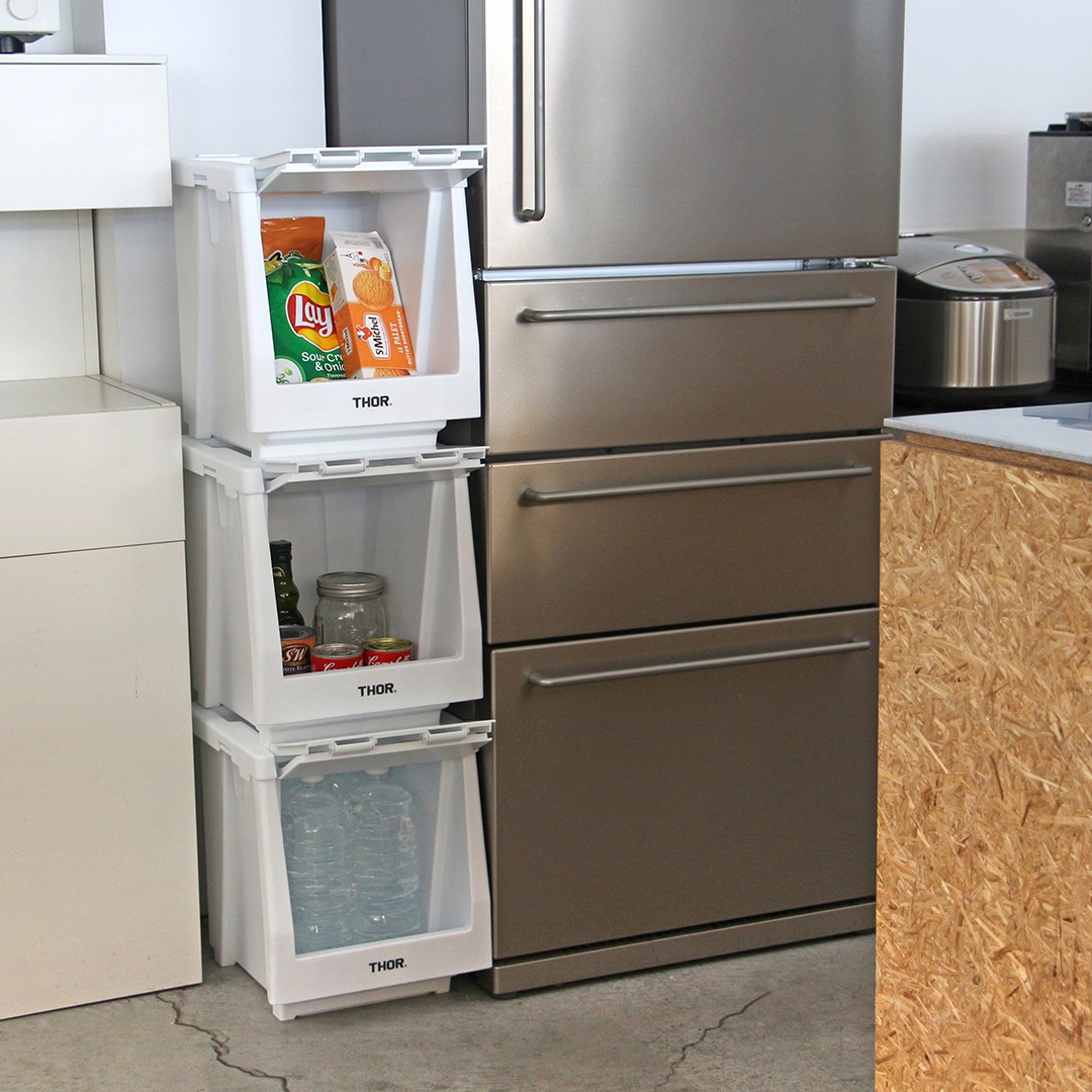 THORスタッキングシェルフコンテナは、自由にカスタマイズできる柔軟な設計とデザイン性・機能性を兼ね備え、あらゆる場面で頼りになる収納アイテムです。収納スペースをさらに洗練されたものにしてみませんか?