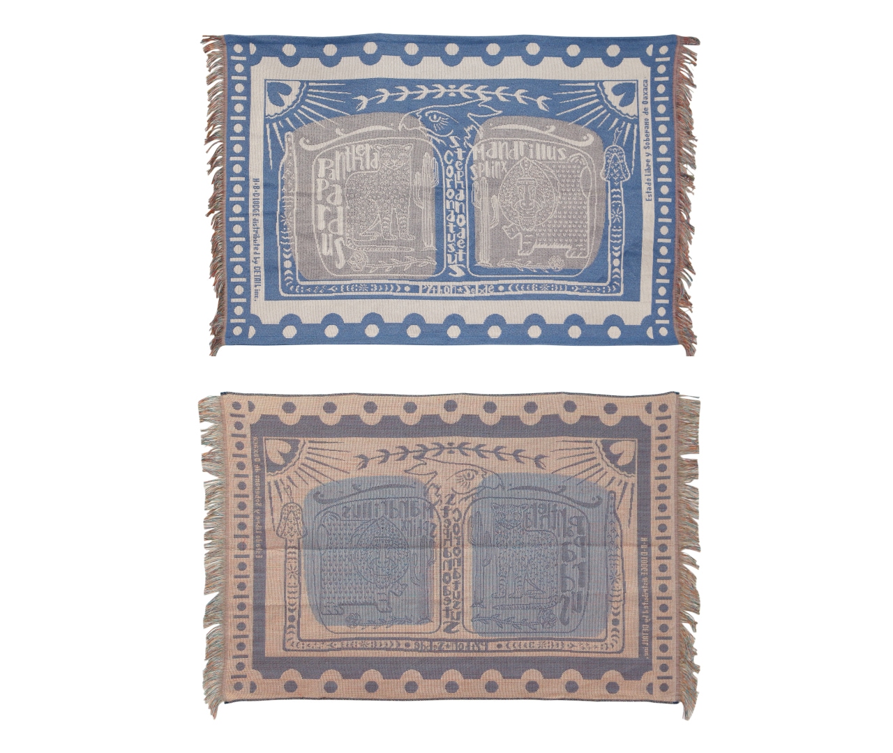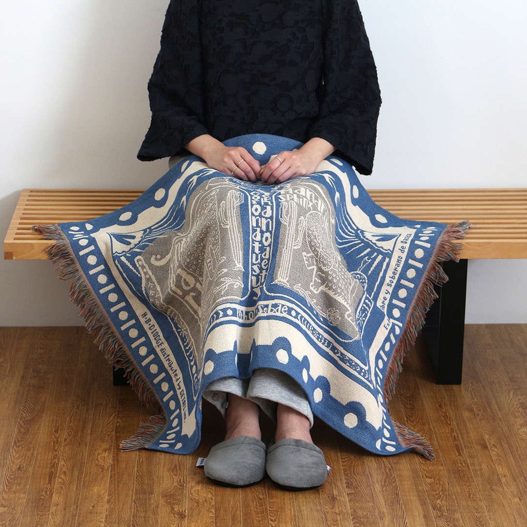 素材はポリエステルの耐久性とコットンの通気性の両方を特性を備えたポリエステルコットン生地。少し厚みがありながらも艶感があり、触り心地がよく、さらには洗濯OKと季節を問わず通年ご使用いただける素材感です。足元が少し冷える日はさっと広げて快適に過ごせる、暮らしのなかで持っておきたい1枚です。