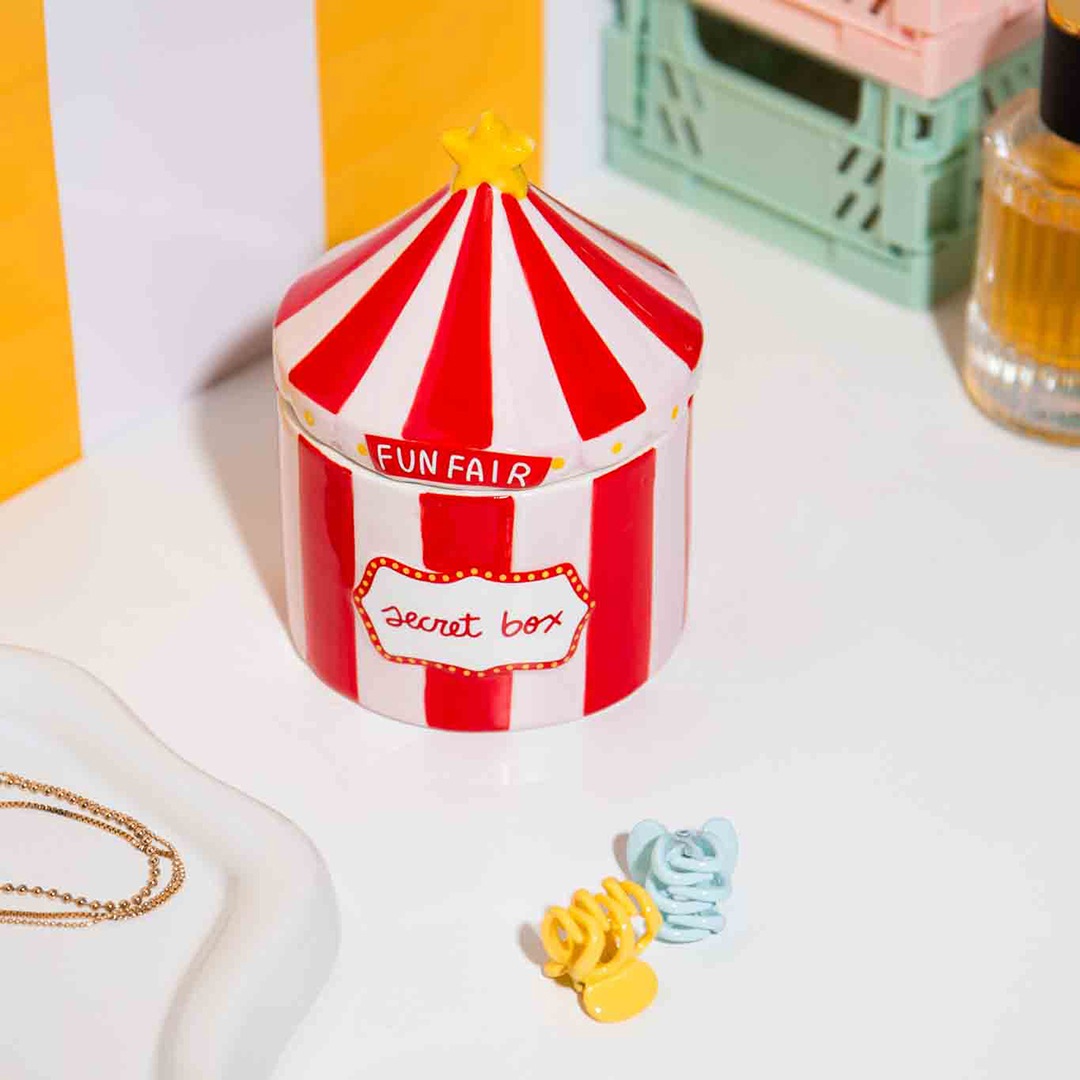 『FUN FAIR(ファンフェア)=遊園地』のサーカステントをモチーフにした、陶器製収納ボックス。