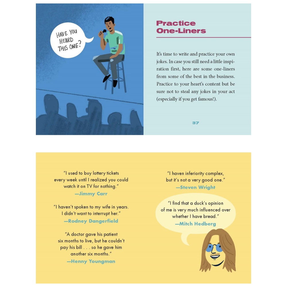 スタンドアップコメディの基本を解説した、フルカラーのイラスト入りブックレット付き。ミニチュアながら本格的なリズム体験を味わえるアイテムです。