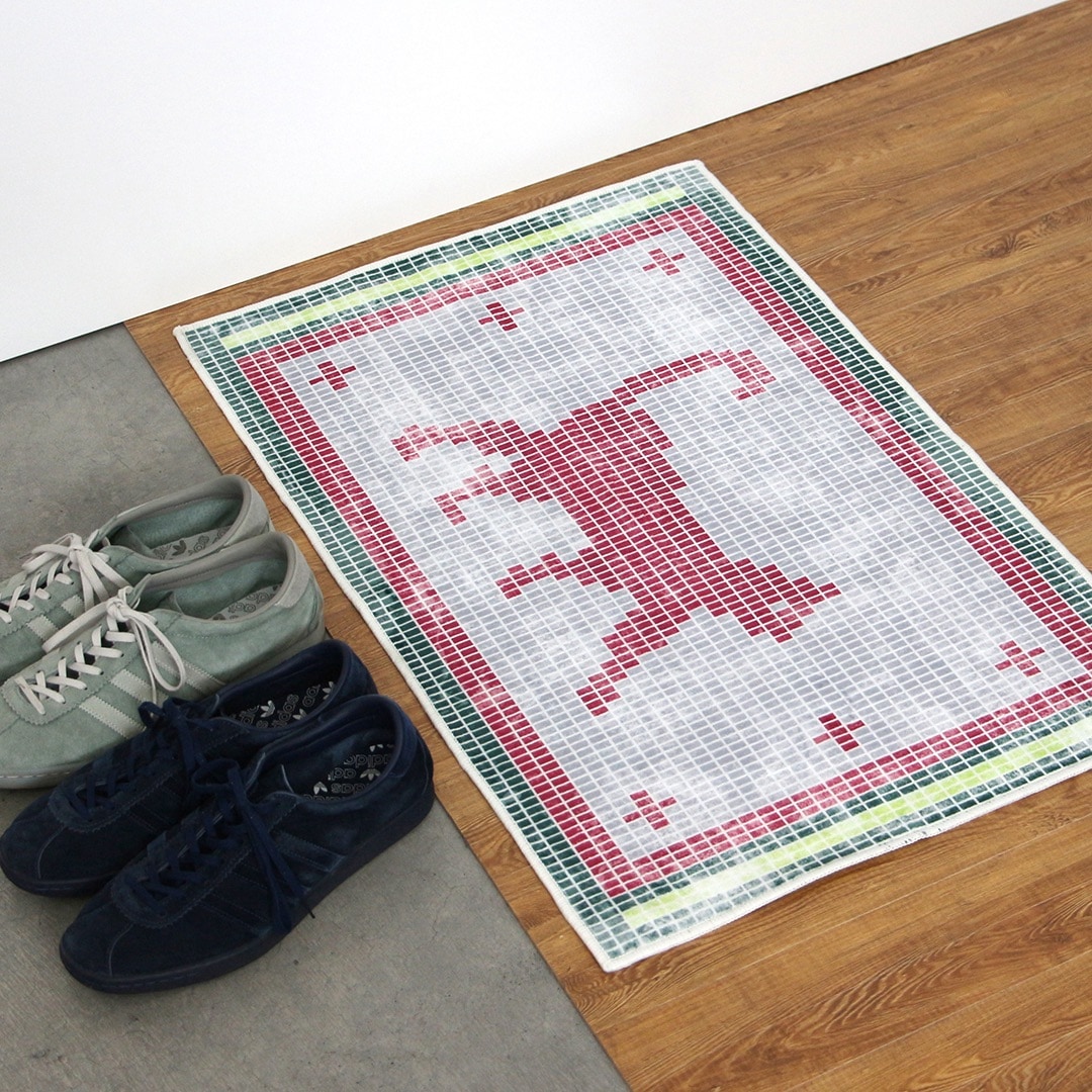 汚れても丸洗いが可能なため、玄関やリビングなど日常使いにも安心。デザイン性と実用性を兼ね備えた、インテリアの主役になる一枚です。