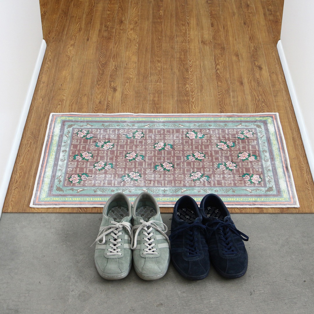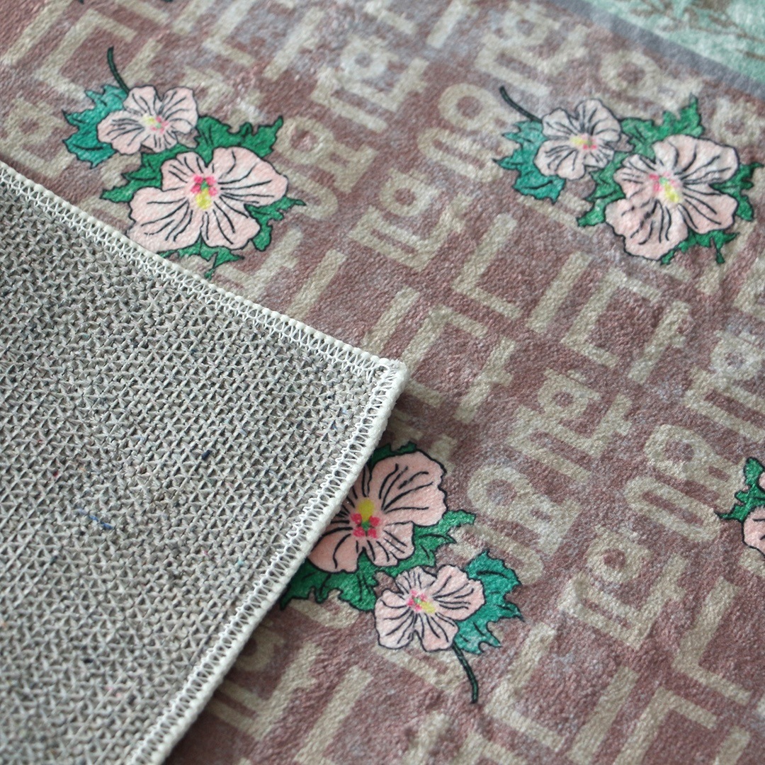 ウォッシャブル ラグ "ハイビスカス・シリアカス / ブラウン" | 韓国モチーフの洗える玄関マット