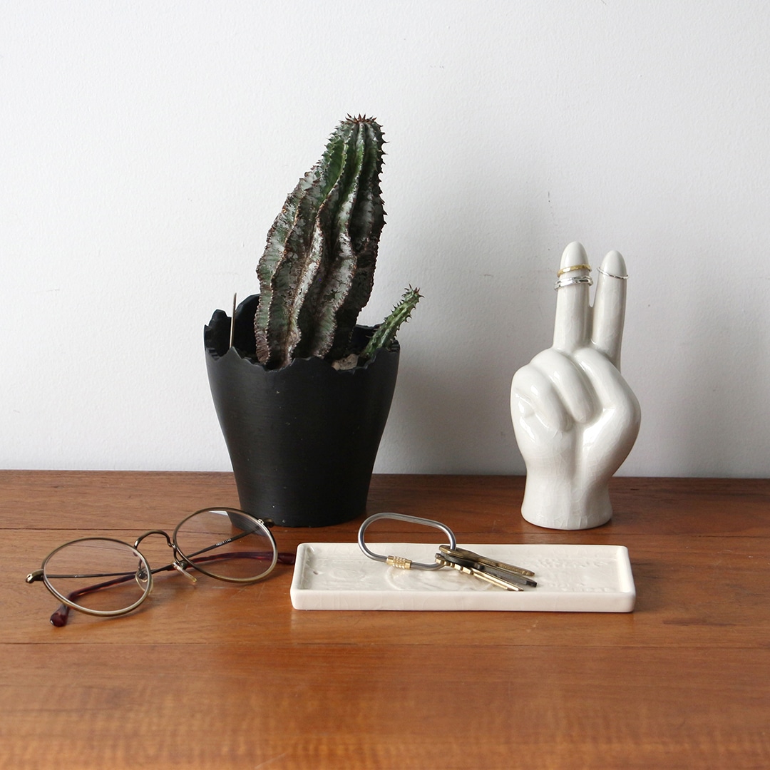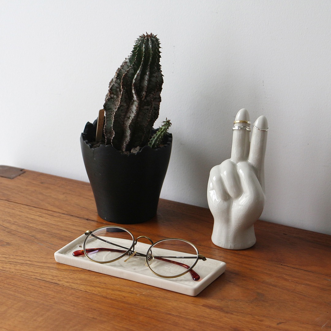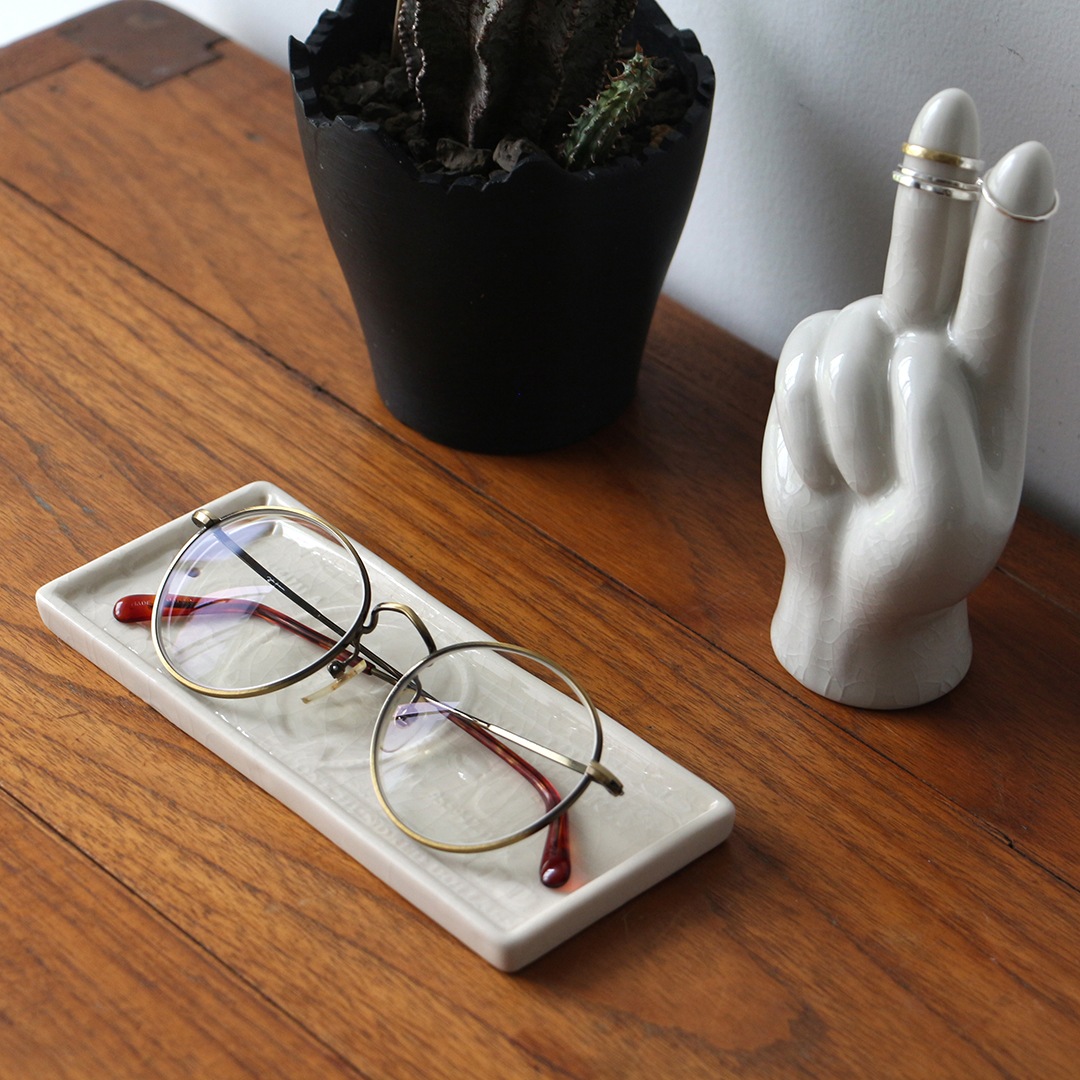 マネートレーとしてはもちろん、キーリング・ジュエリー・アクセサリー・メガネ置きなど、日常の小物を美しく受け止めるトレイとして活躍します。