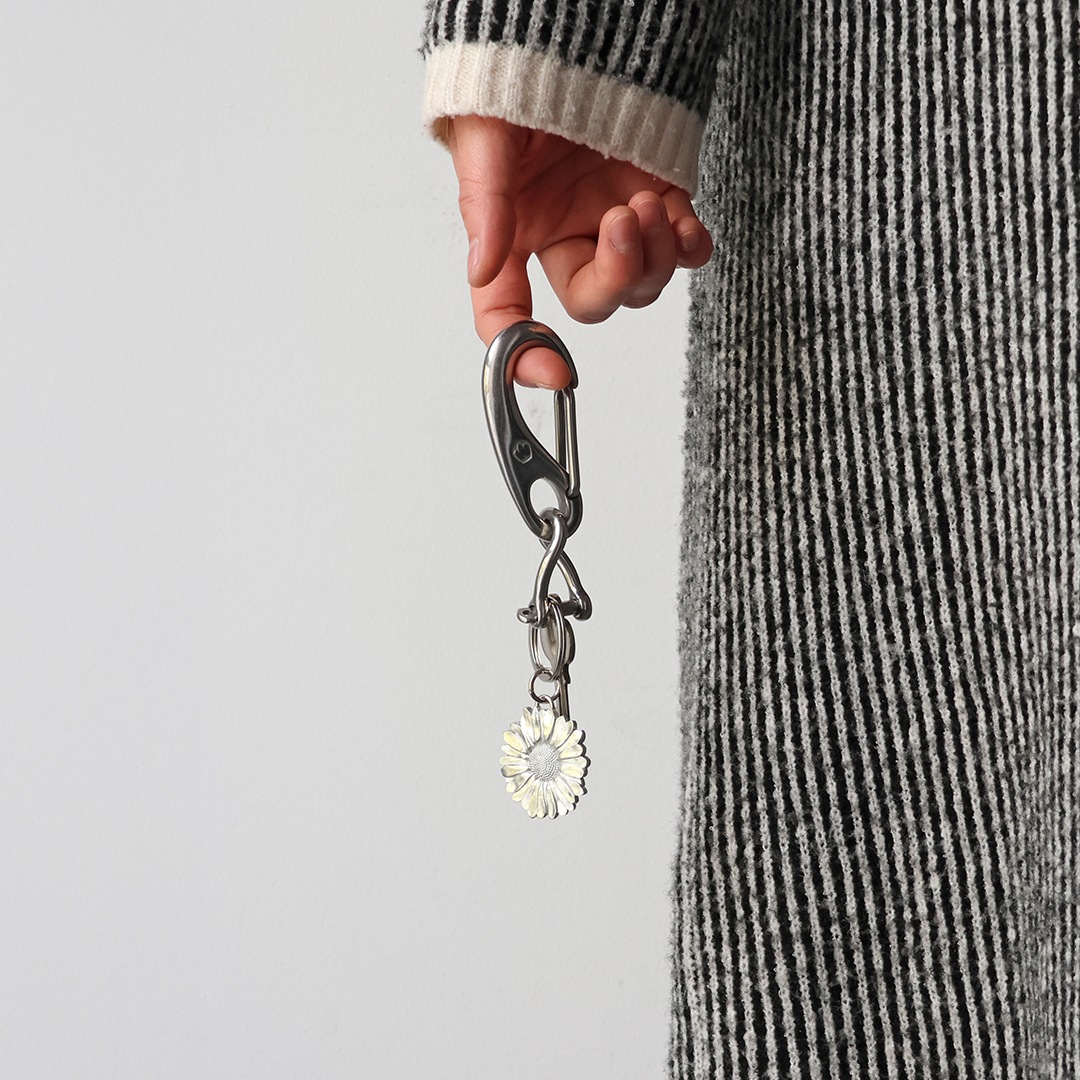 お気に入りのモチーフを選び、シルバーカラーのカラビナと組み合わせることで、より自分らしいアレンジが可能。複数のキーリングをまとめて付けてもバランスよくまとまり、バッグやベルトループに取り付ければ、ファッションのアクセントとしても活躍します。選ぶ楽しさも、このキーリングの魅力のひとつです。
