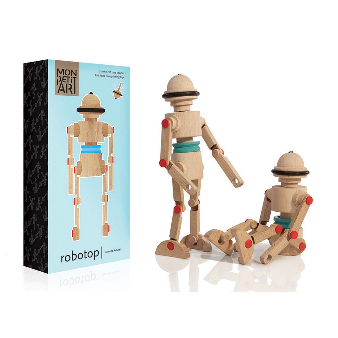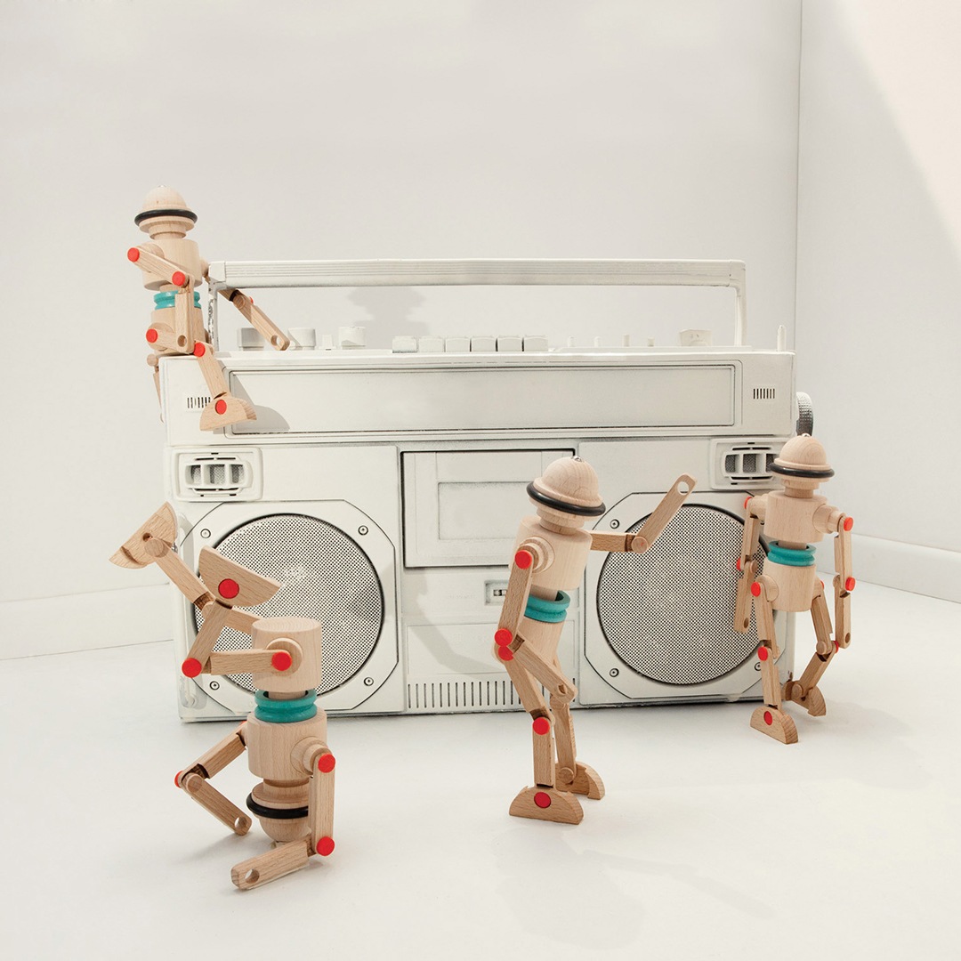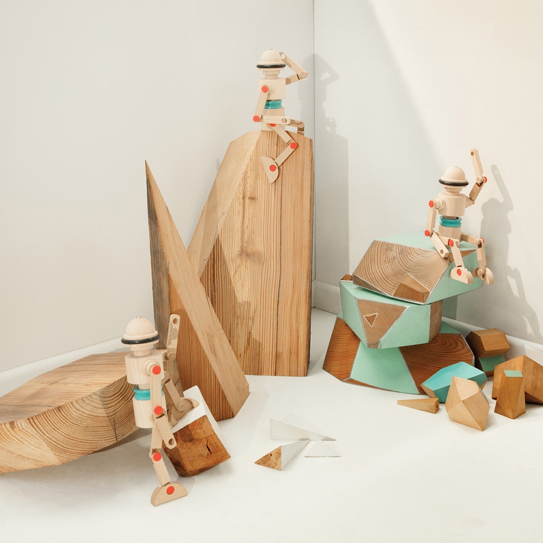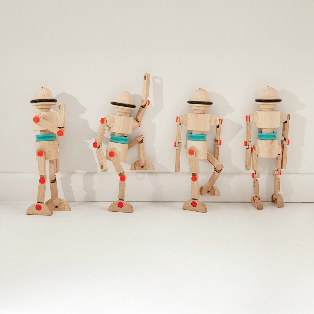 頭部は取り外して“こま”として回して遊ぶことができ、身体は関節を動かしてアクロバティックなポーズを取ることが可能。ブレイキンやロボットダンス、1972年生まれのGonzaloが体感してきたストリートカルチャーのエッセンスを落とし込み、子どもから大人まで楽しめるデザインに仕上げられています。インテリアとして飾っても存在感があり、アートピースとしても楽しめる木製玩具です。