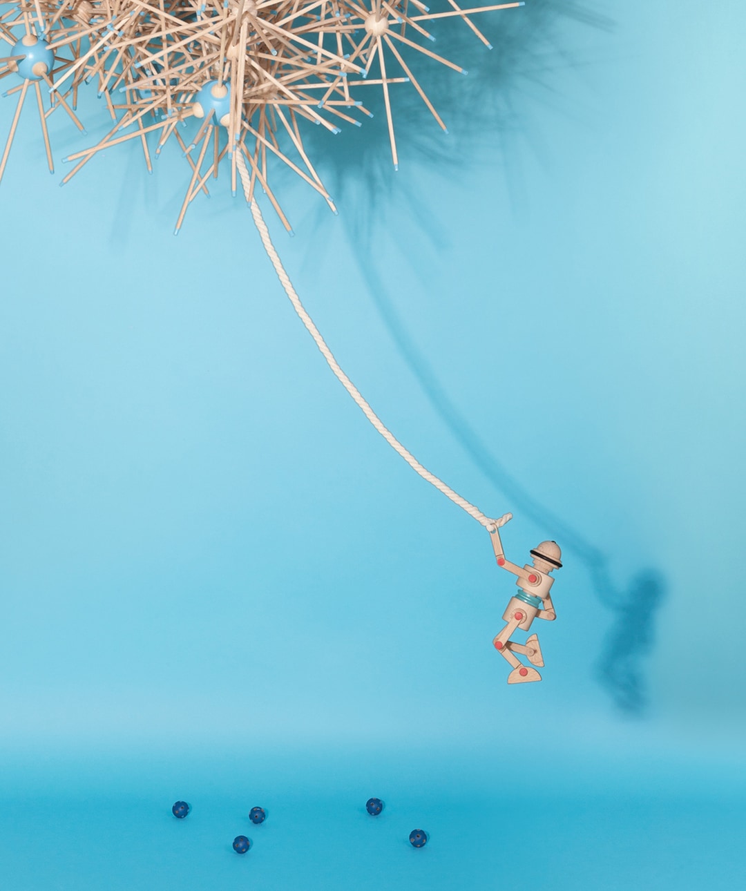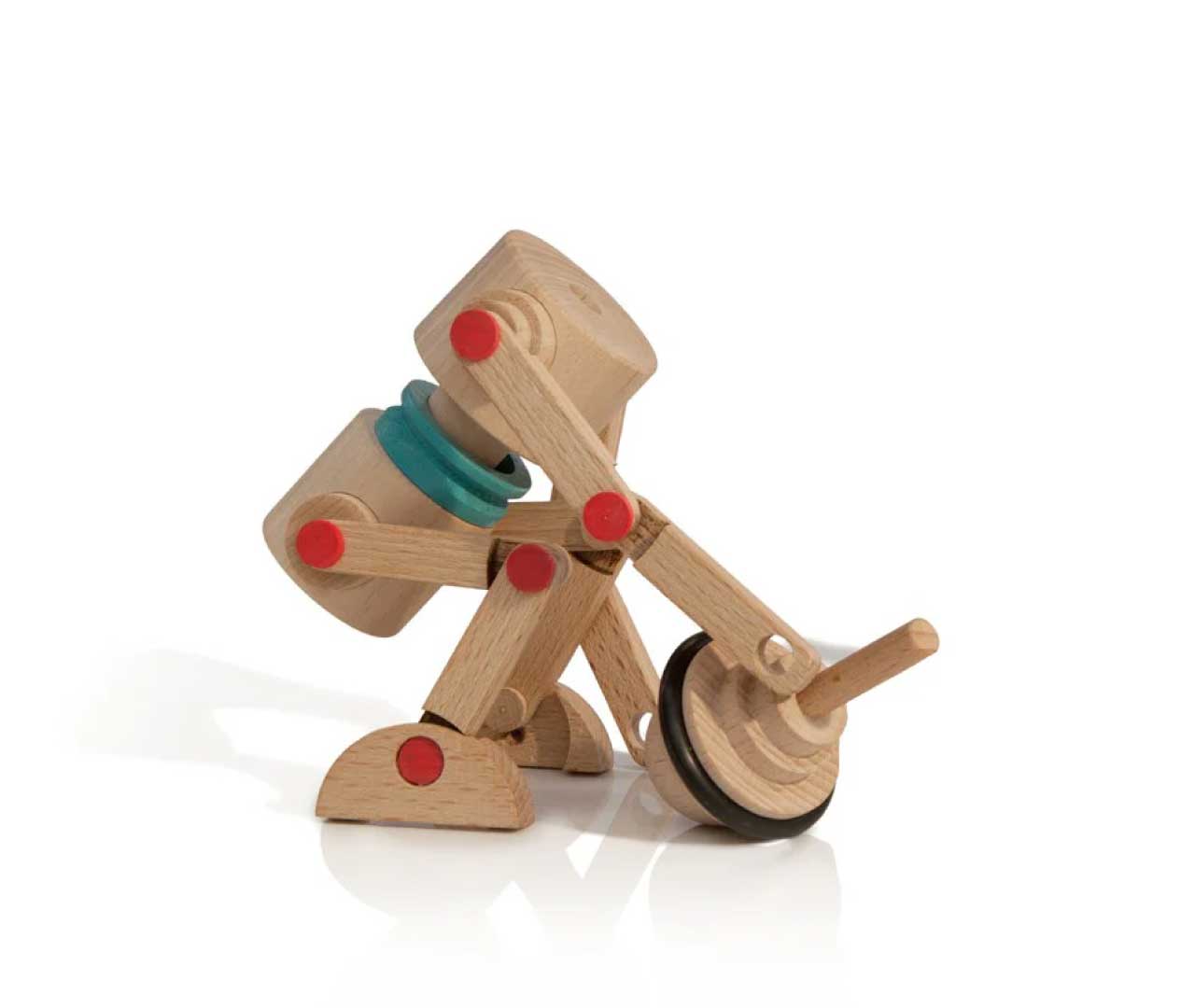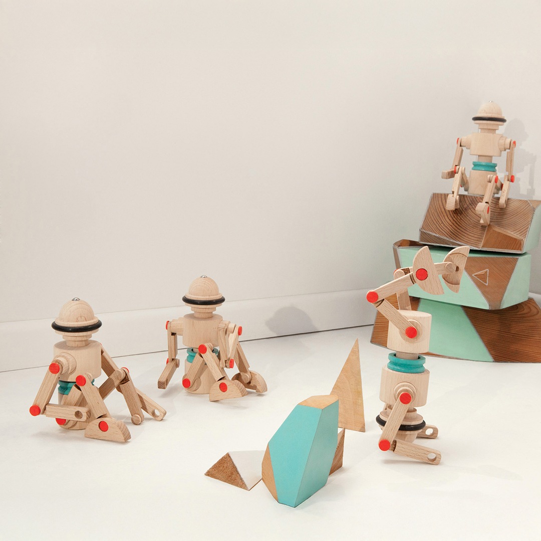 頭部は取り外して“こま”として回して遊ぶことができ、身体は関節を動かしてアクロバティックなポーズを取ることが可能。ブレイキンやロボットダンス、1972年生まれのGonzaloが体感してきたストリートカルチャーのエッセンスを落とし込み、子どもから大人まで楽しめるデザインに仕上げられています。インテリアとして飾っても存在感があり、アートピースとしても楽しめる木製玩具です。