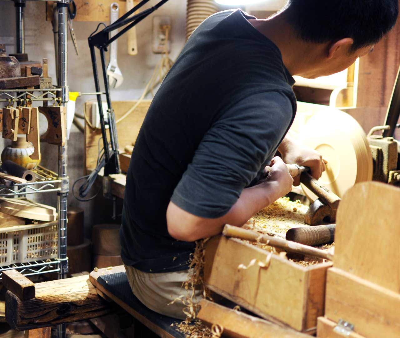 長年培われた挽物技術により、滑らかな曲線と吸い付くような木肌の質感、精度の高い継ぎ目の美しさを実現しています。