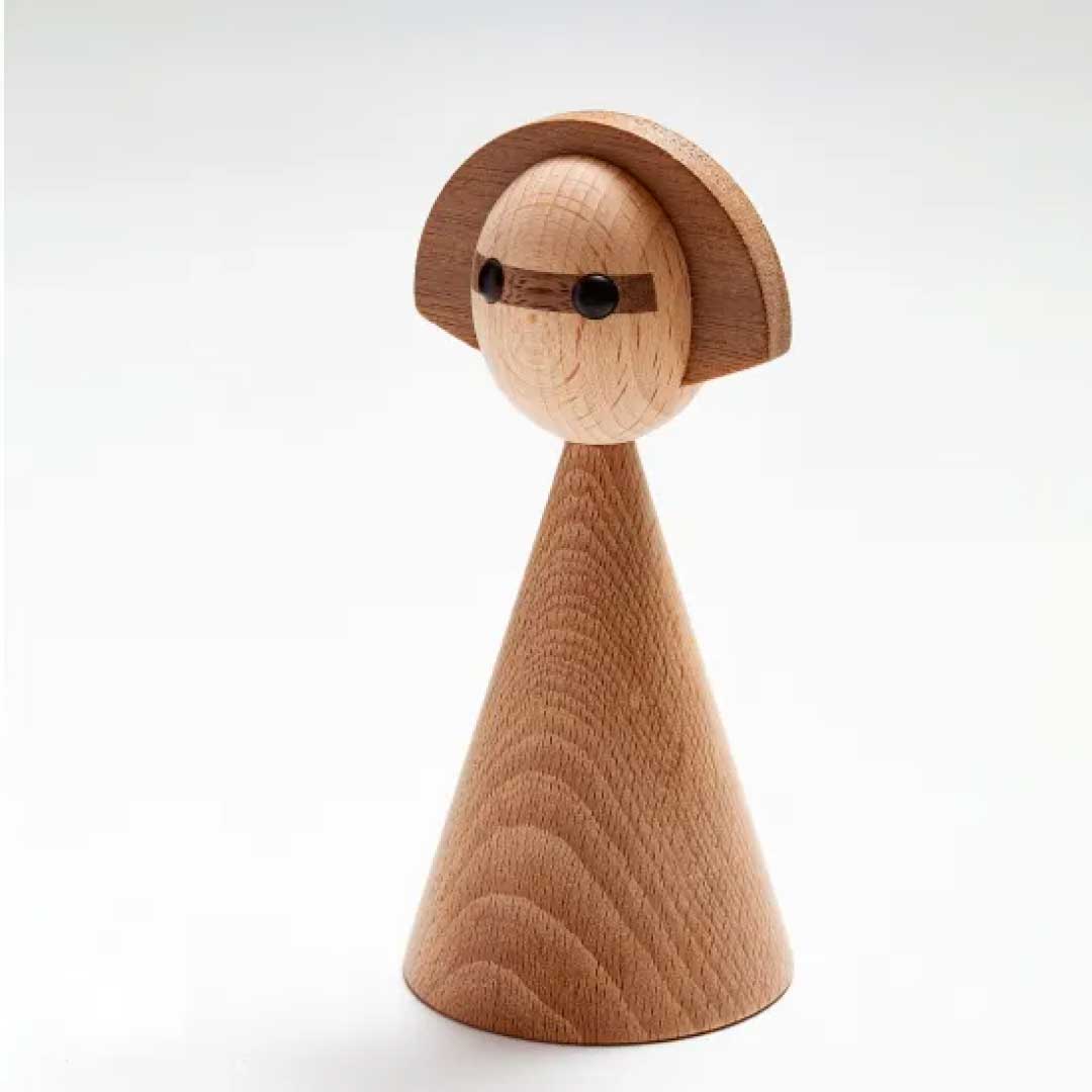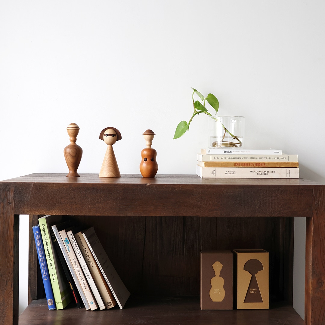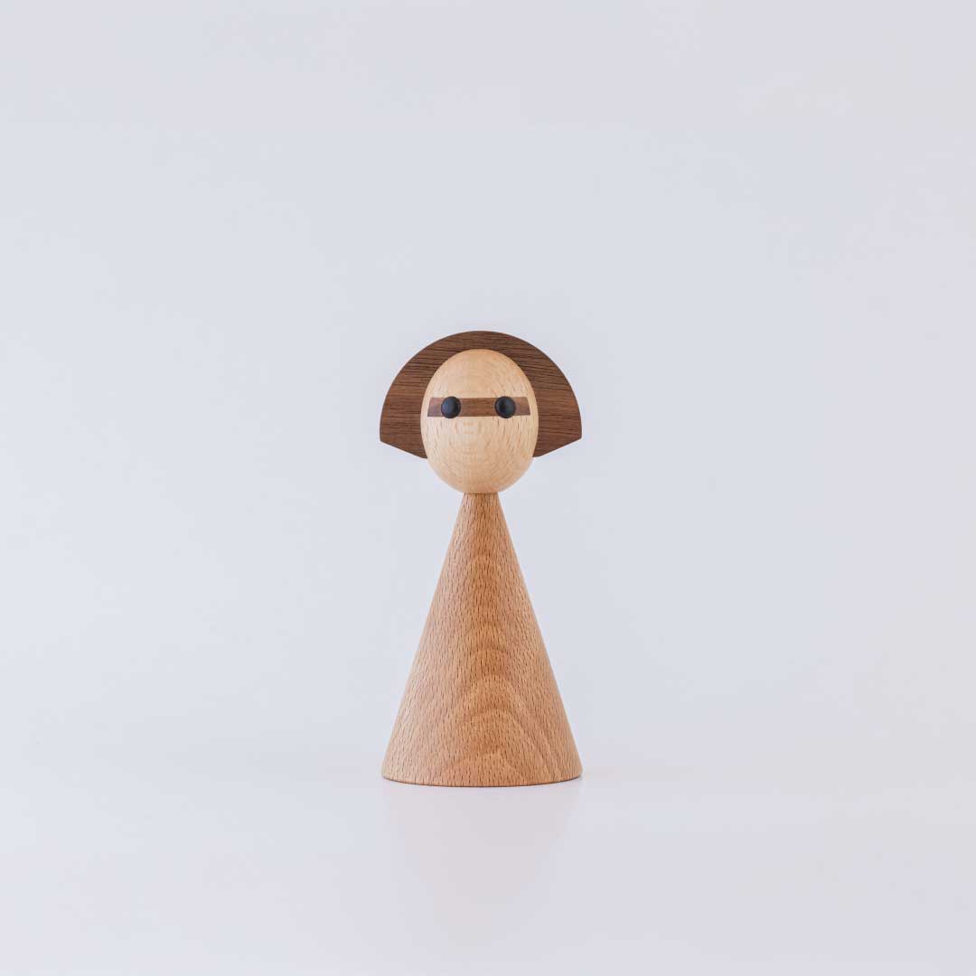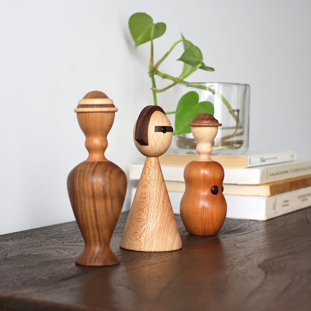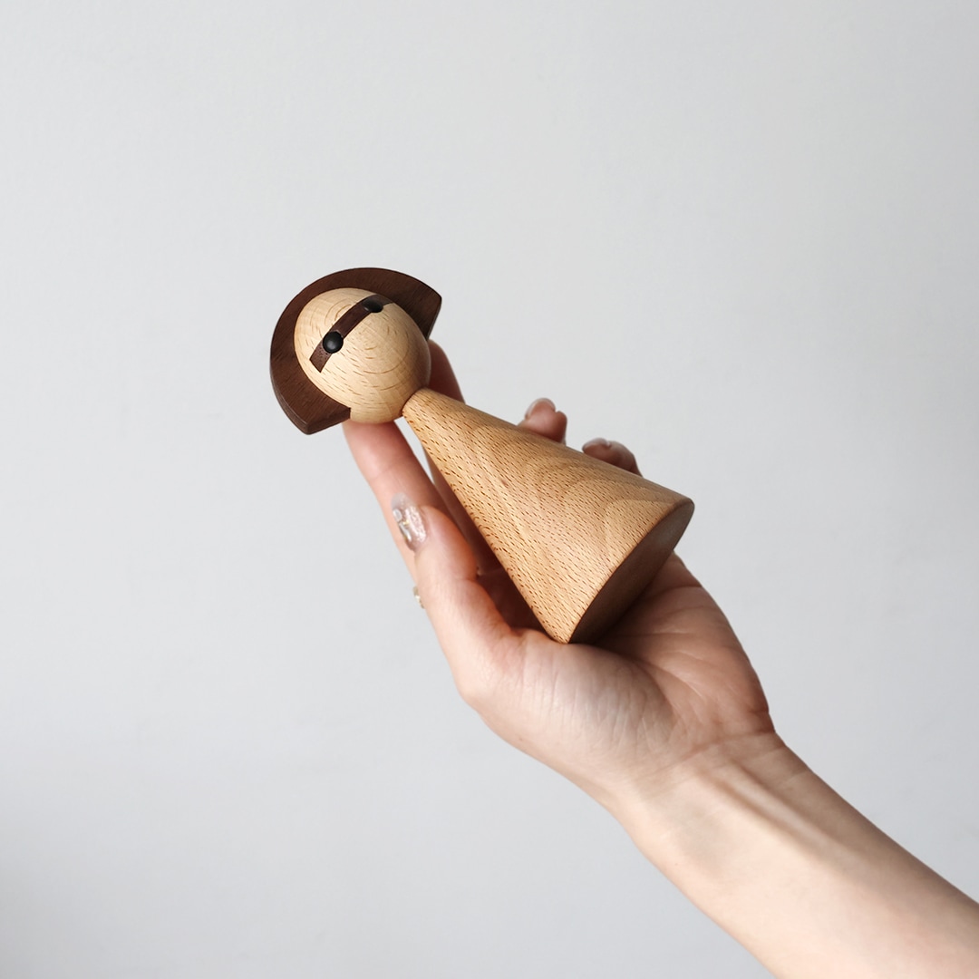 日本のこけしをモチーフに、しなやかな曲線と女性的なフォルムで仕上げた木製オブジェです。リビングや玄関にさりげなく置くだけで、空間に自然と馴染みながら、やわらかな存在感を添えてくれます。