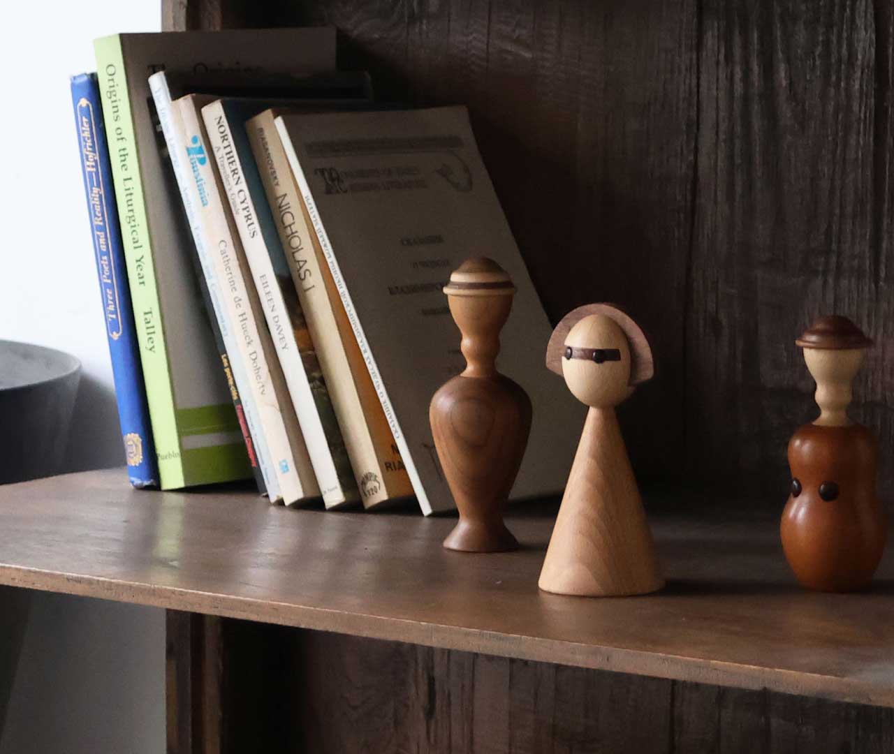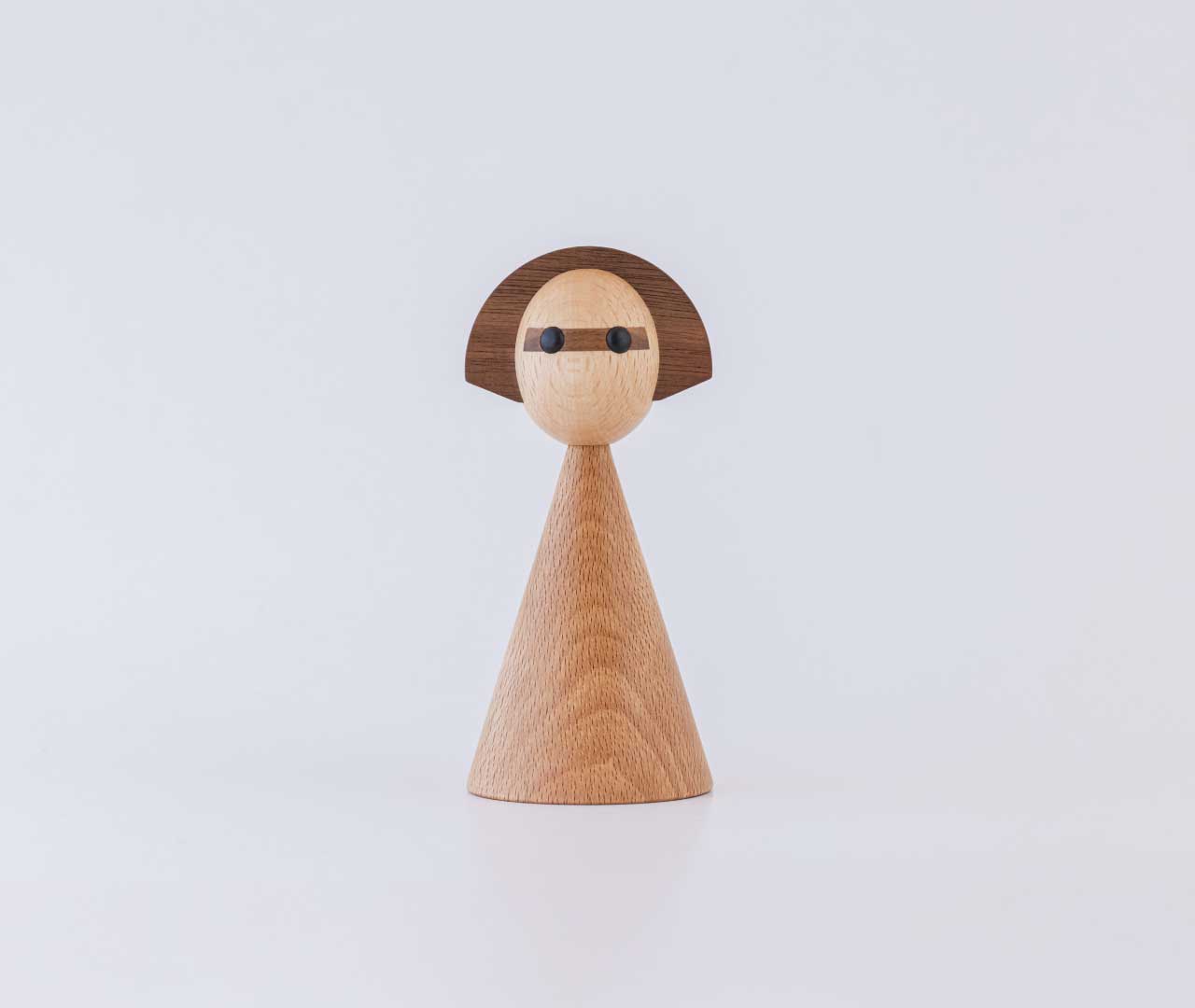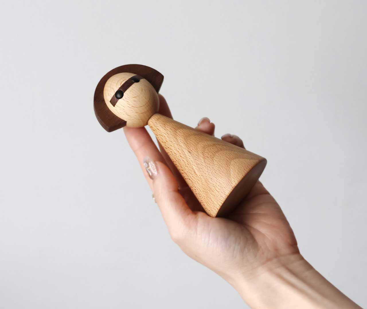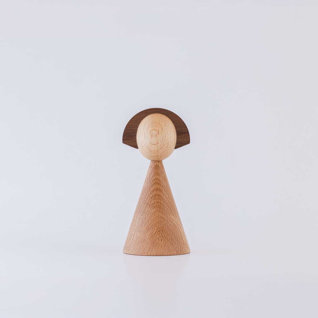 日本のこけしをモチーフに、しなやかな曲線と女性的なフォルムで仕上げた木製オブジェです。リビングや玄関にさりげなく置くだけで、空間に自然と馴染みながら、やわらかな存在感を添えてくれます。