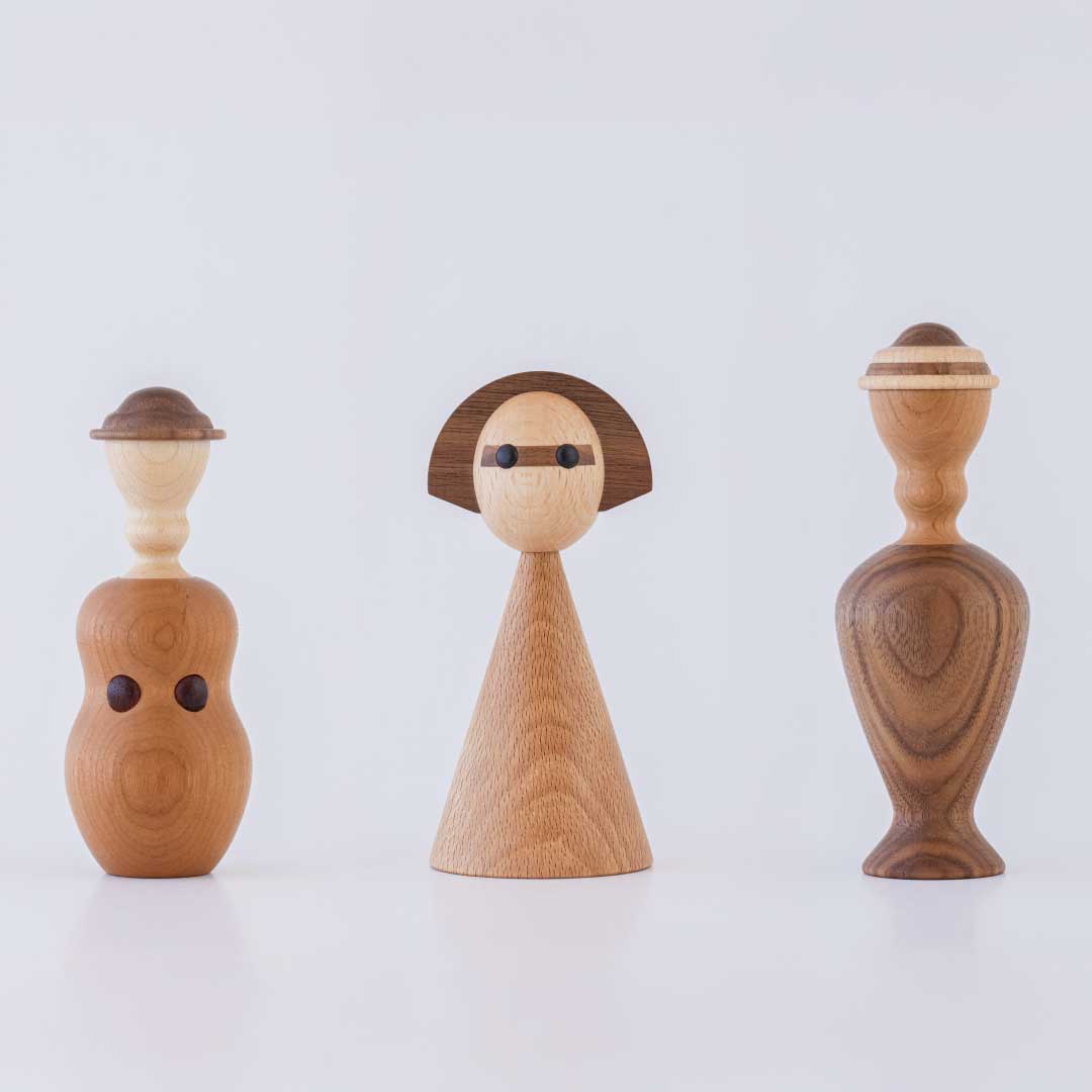 イタリアのアーティスト Anna Gili と 岸本挽物 による「KOKESHI」は、日本の伝統を現代の感性で再解釈した木製オブジェ。