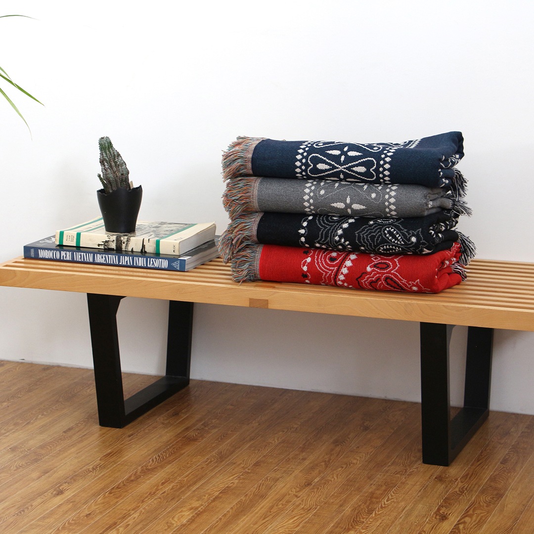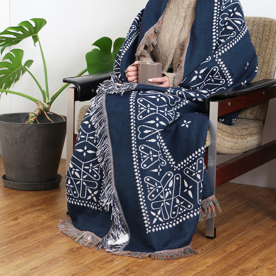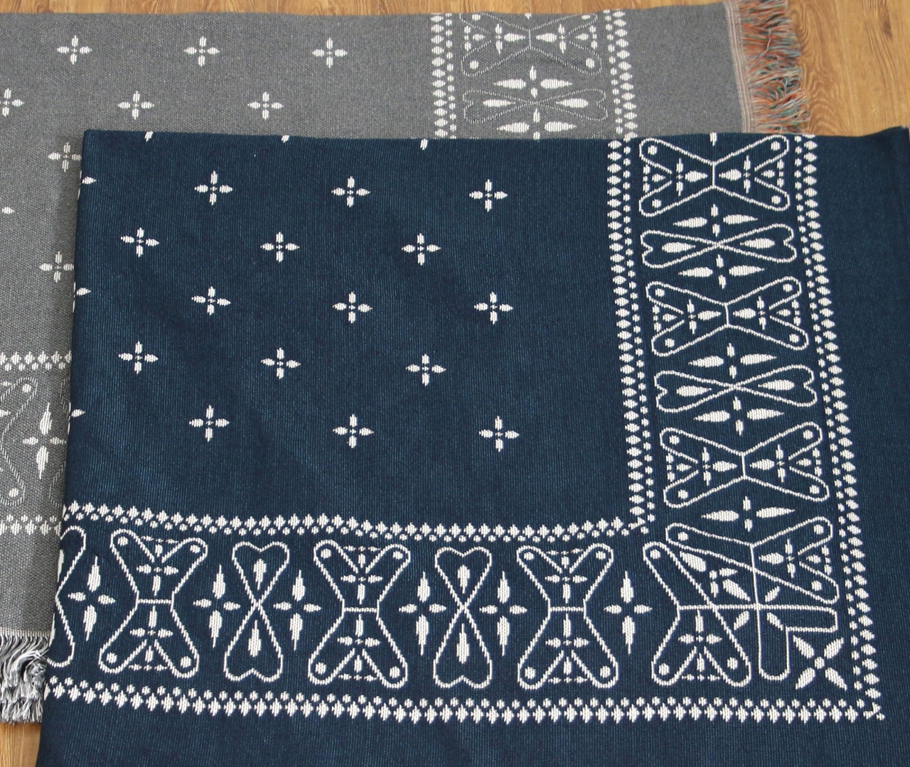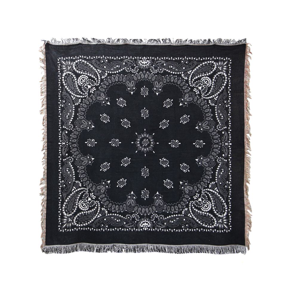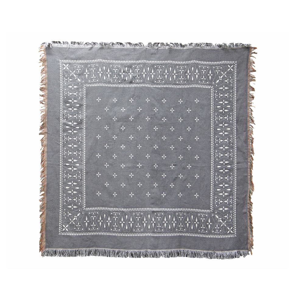 約150×150cmのゆとりあるサイズで、ブランケットとして羽織るほか、ソファやベッドカバー、ラグマット、テーブルクロス、タペストリーとしても活躍します。